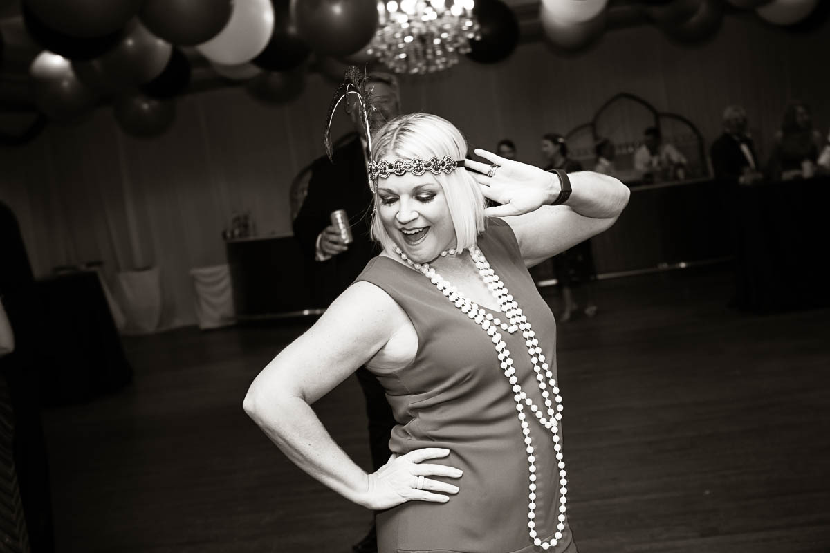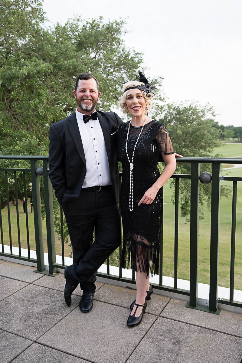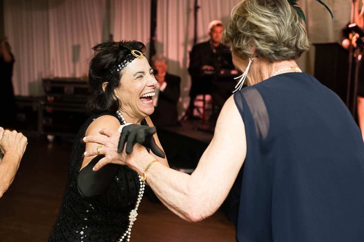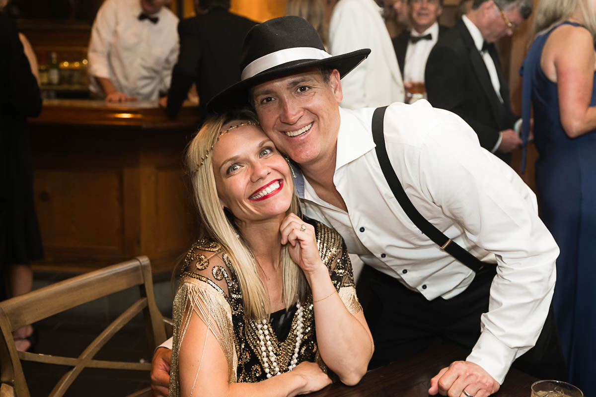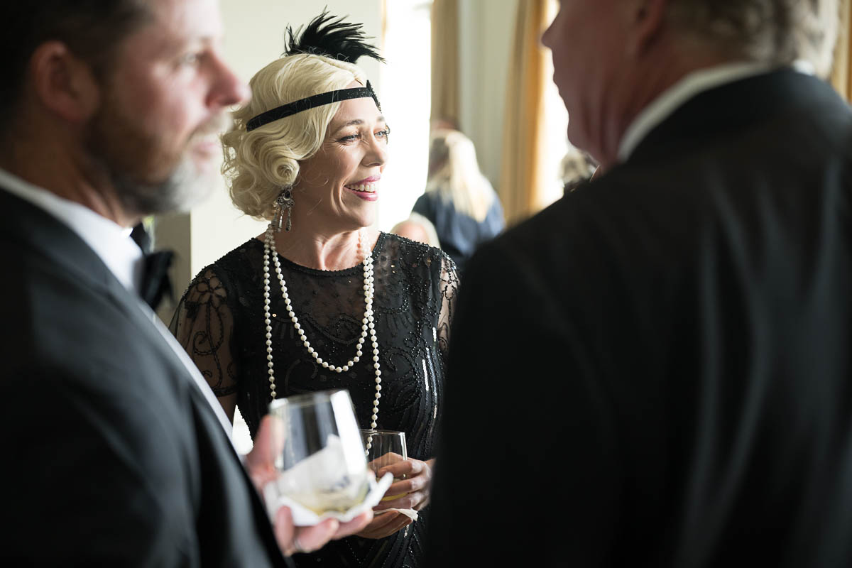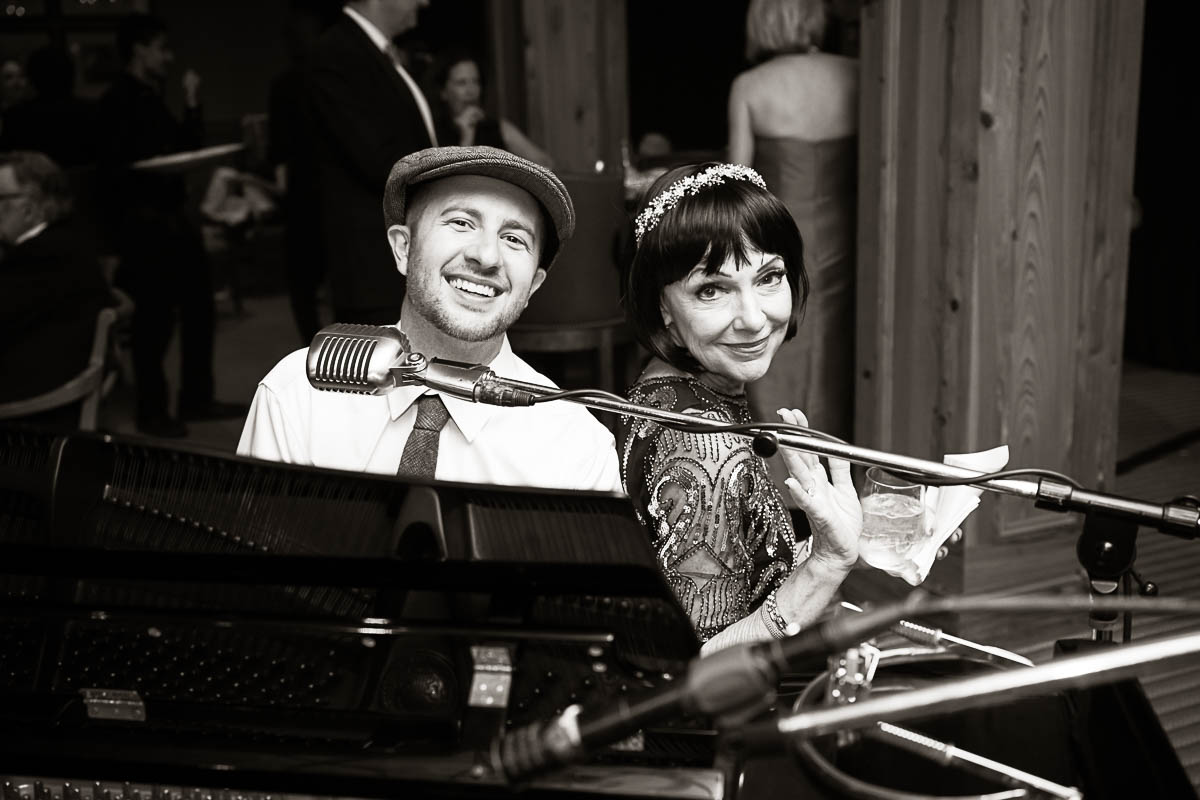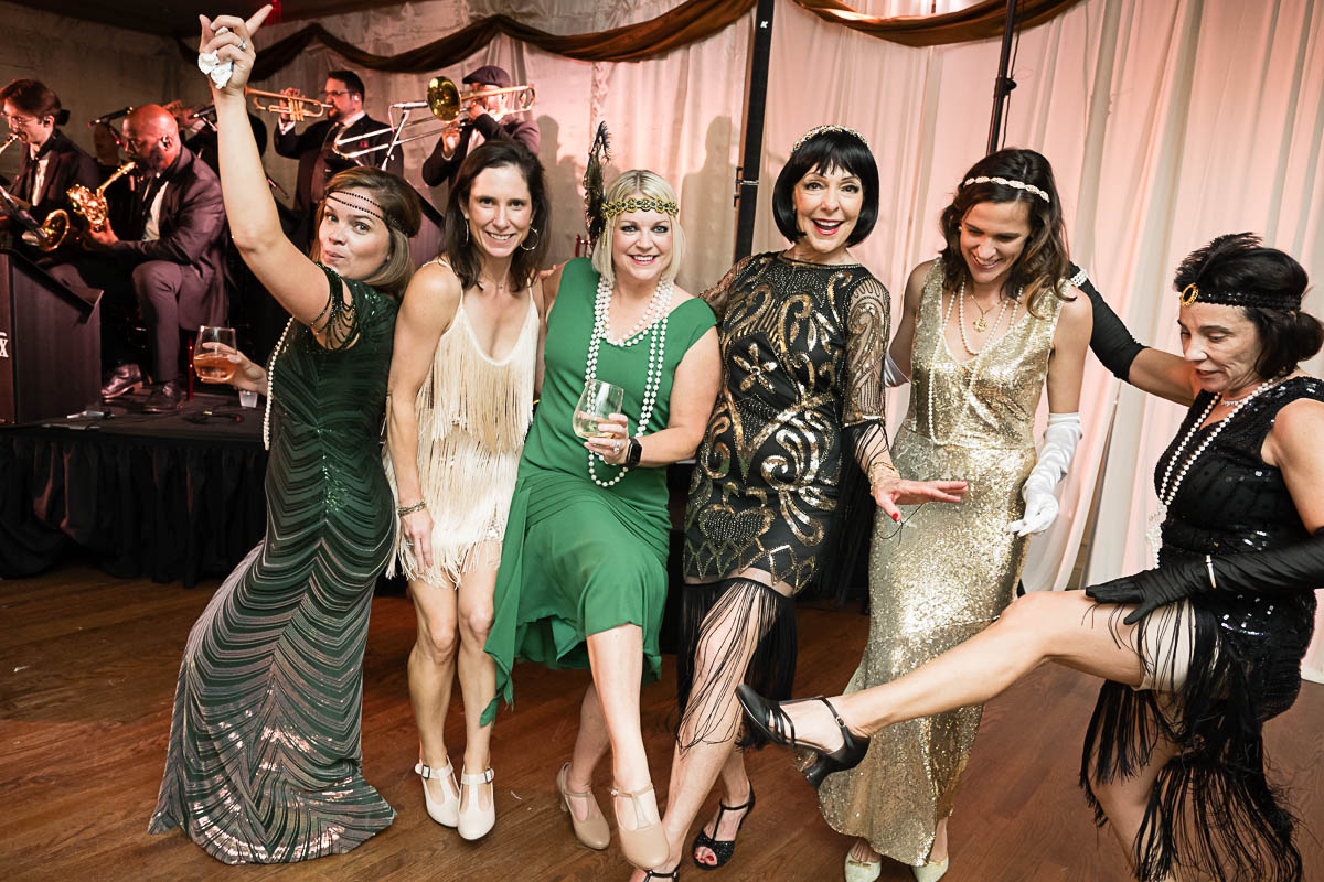 The guests looked fabulous as well! Everyone took the theme to heart and really dolled up in 1920s outfits, accessories, hair styles, and shoes. The food was fantastic. There was a full brass band, keeping the dance floor hopping. And the Speakeasy had a colorful piano player who took requests and got everyone to sing along.