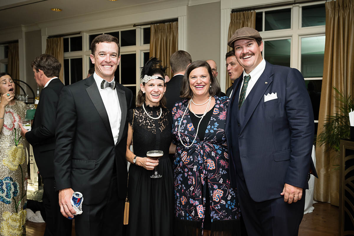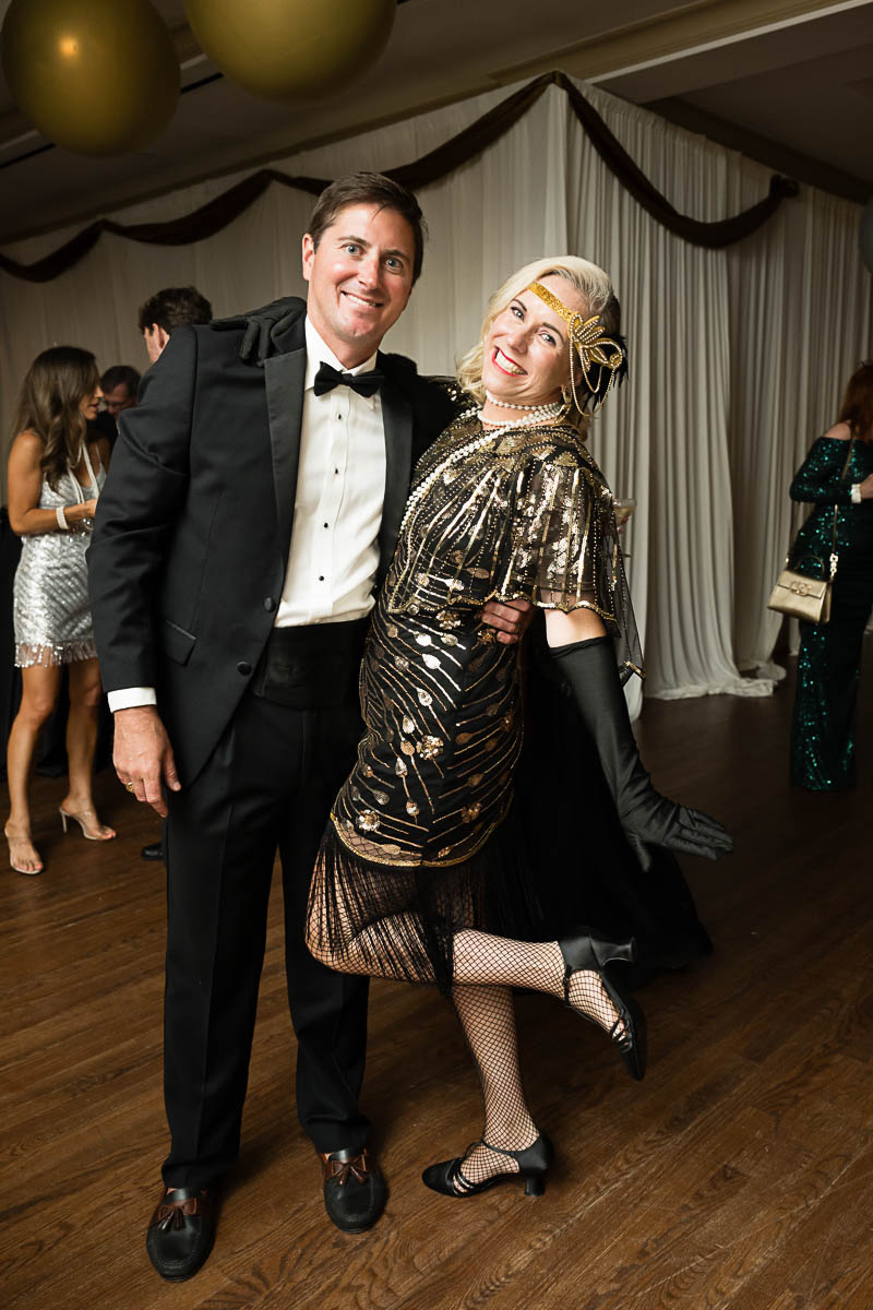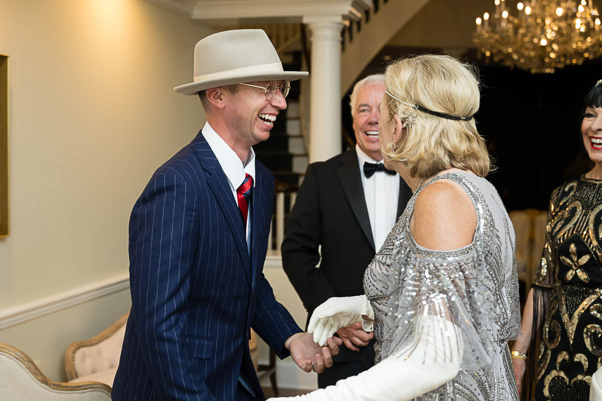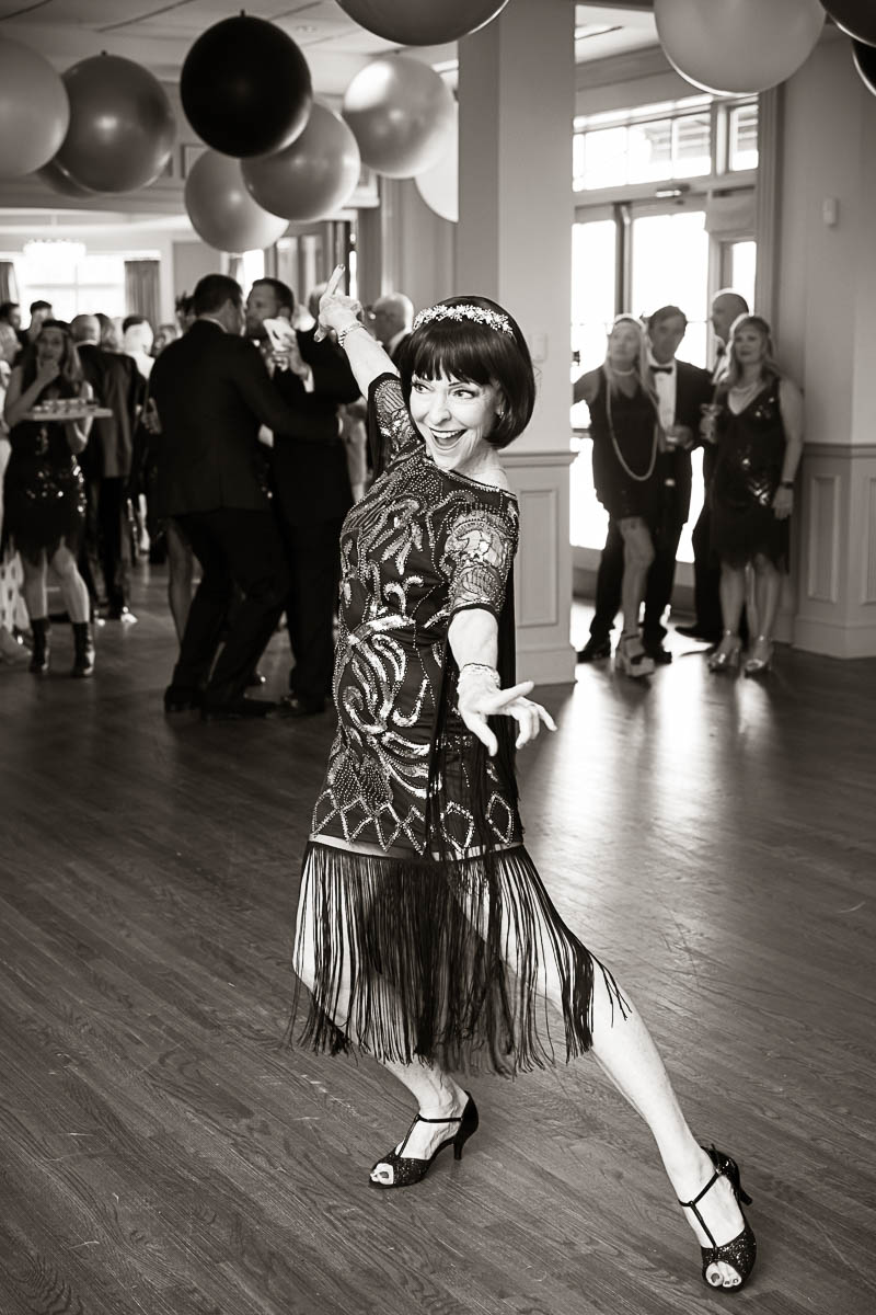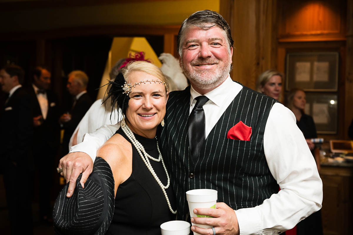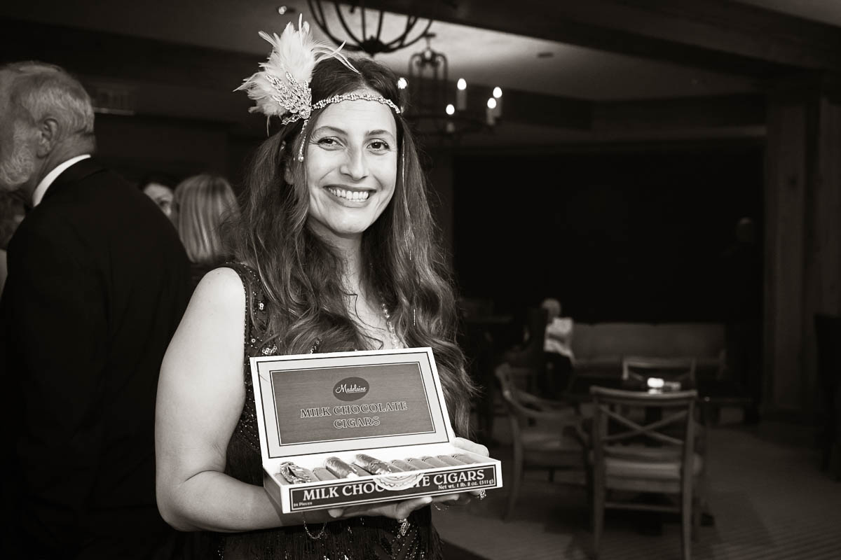 The guests looked fabulous as well! Everyone took the theme to heart and really dolled up in 1920s outfits, accessories, hair styles, and shoes. The food was fantastic. There was a full brass band, keeping the dance floor hopping. And the Speakeasy had a colorful piano player who took requests and got everyone to sing along.