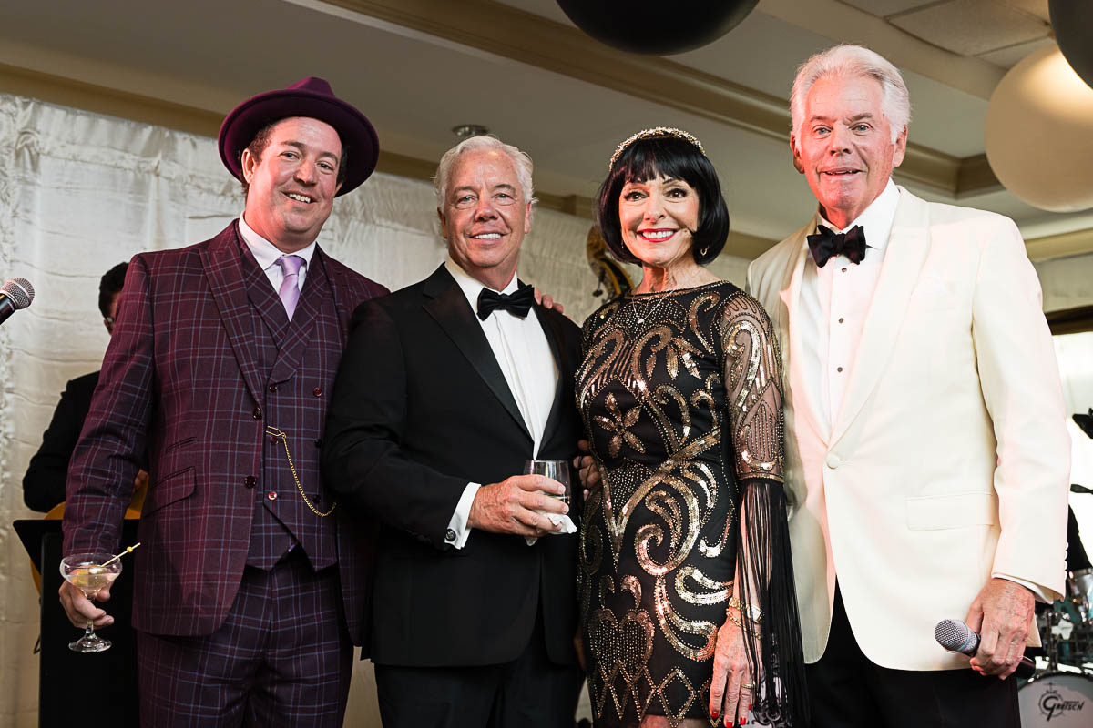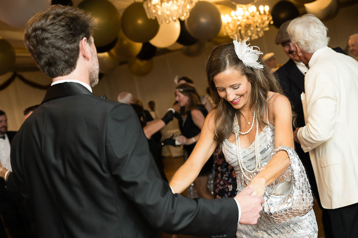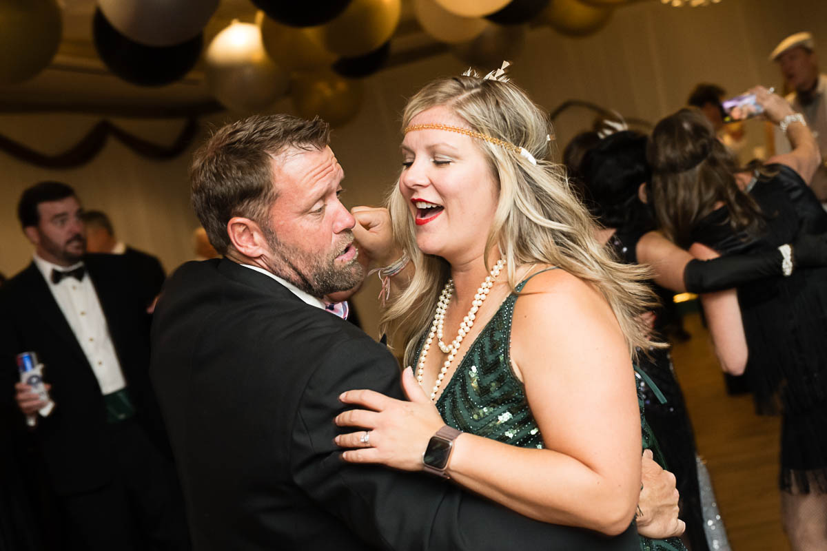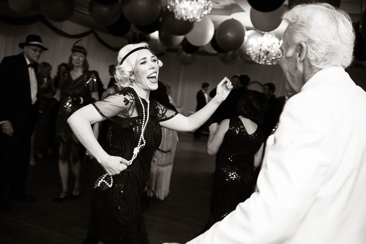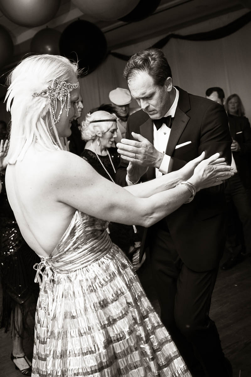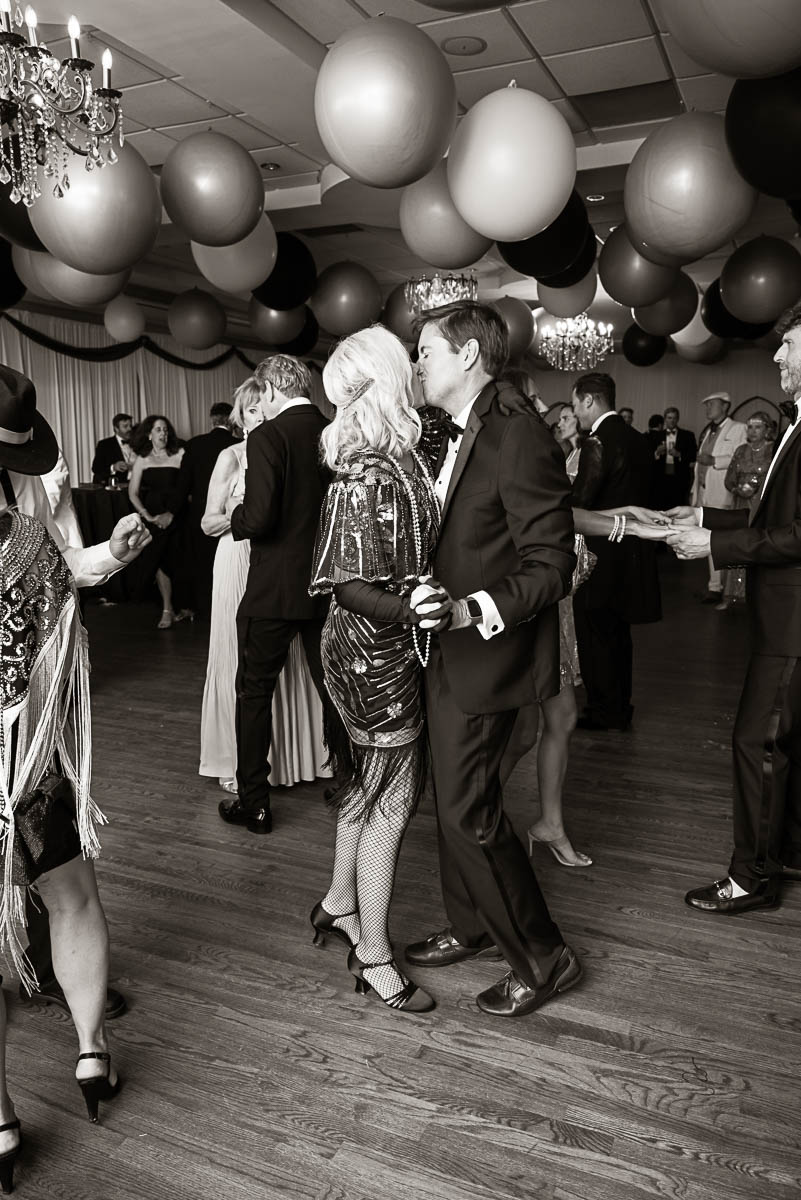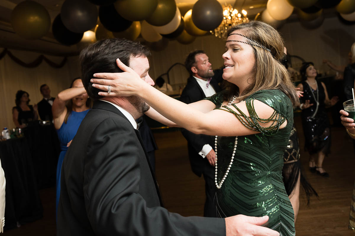 The guests looked fabulous as well! Everyone took the theme to heart and really dolled up in 1920s outfits, accessories, hair styles, and shoes. The food was fantastic. There was a full brass band, keeping the dance floor hopping. And the Speakeasy had a colorful piano player who took requests and got everyone to sing along.
