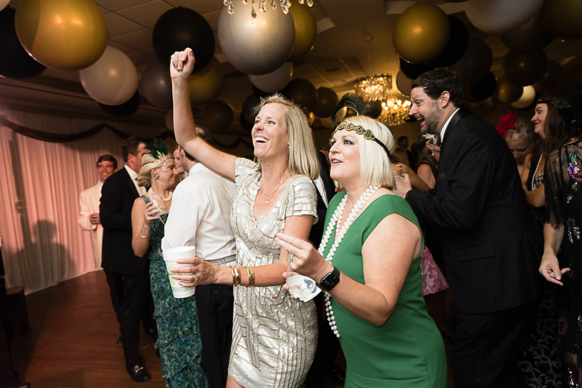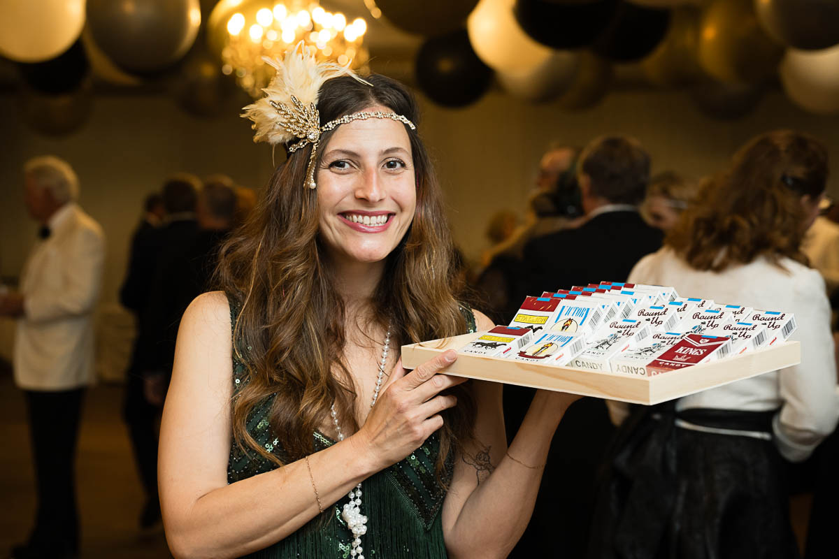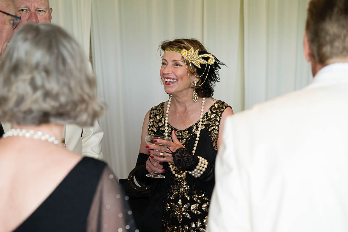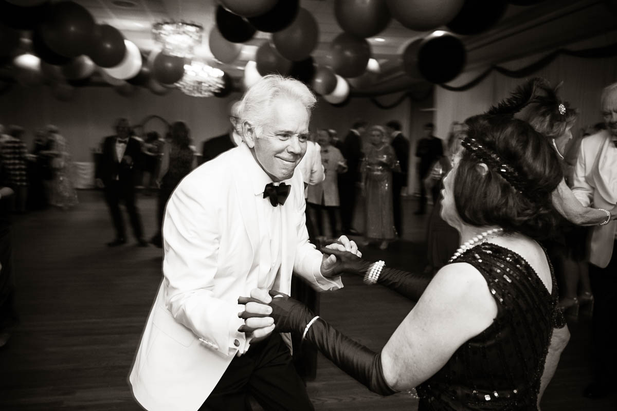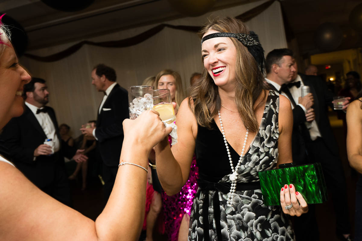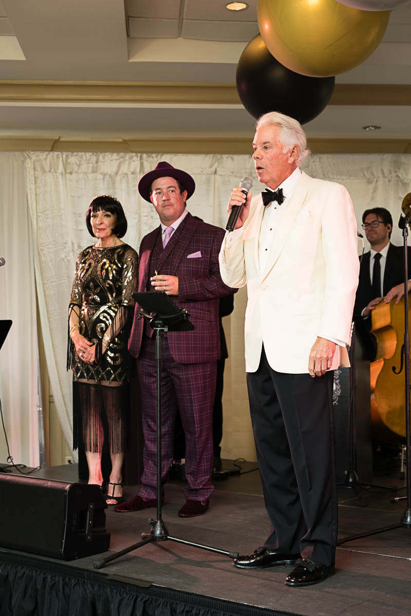 The guests looked fabulous as well! Everyone took the theme to heart and really dolled up in 1920s outfits, accessories, hair styles, and shoes. The food was fantastic. There was a full brass band, keeping the dance floor hopping. And the Speakeasy had a colorful piano player who took requests and got everyone to sing along.