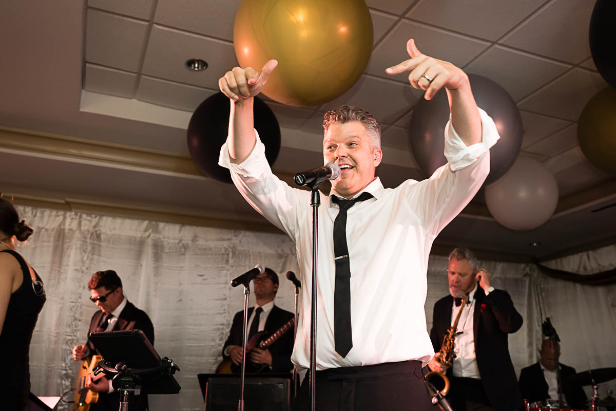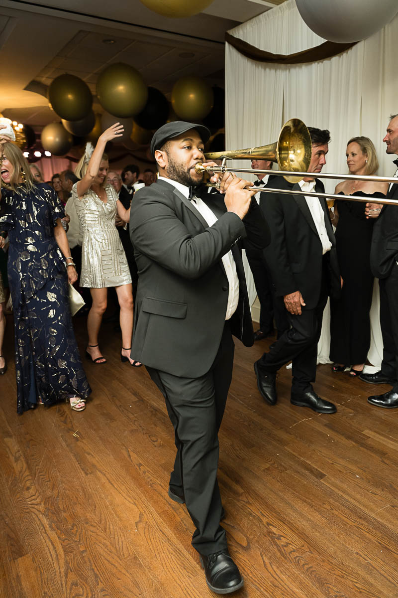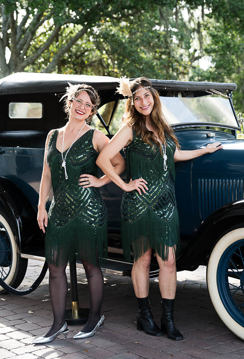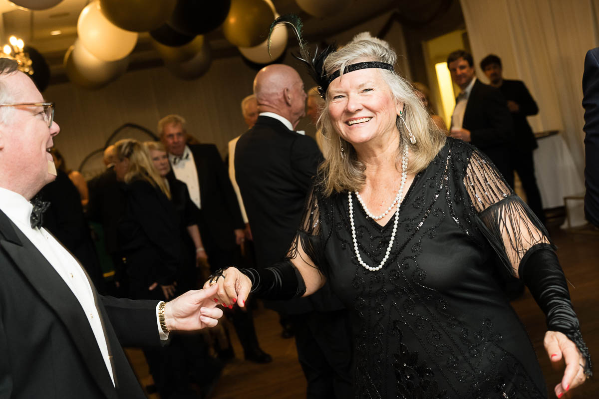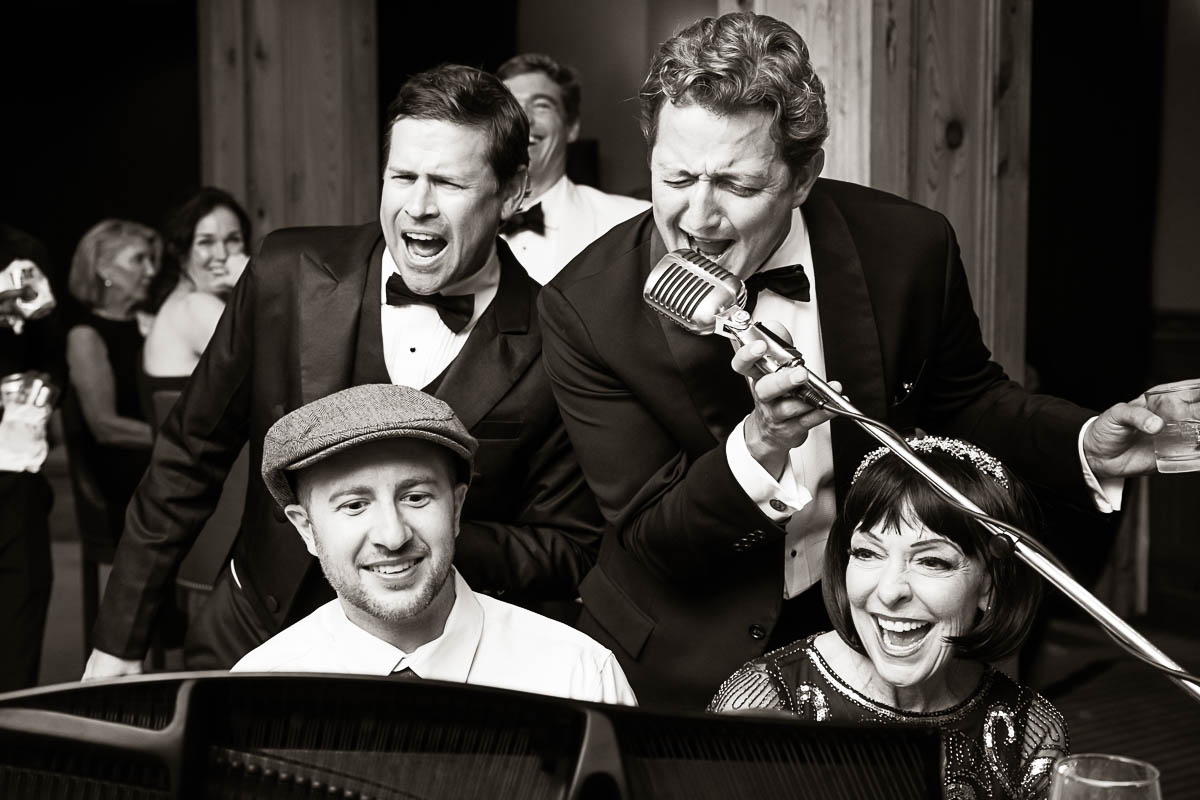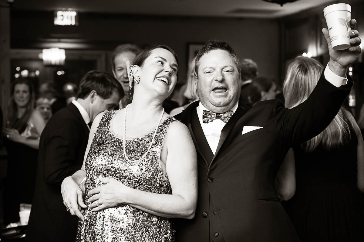 The guests looked fabulous as well! Everyone took the theme to heart and really dolled up in 1920s outfits, accessories, hair styles, and shoes. The food was fantastic. There was a full brass band, keeping the dance floor hopping. And the Speakeasy had a colorful piano player who took requests and got everyone to sing along.