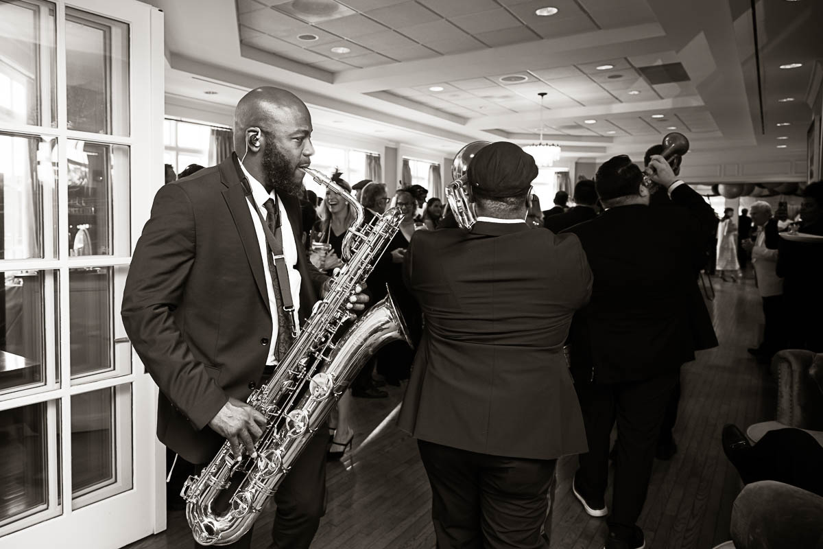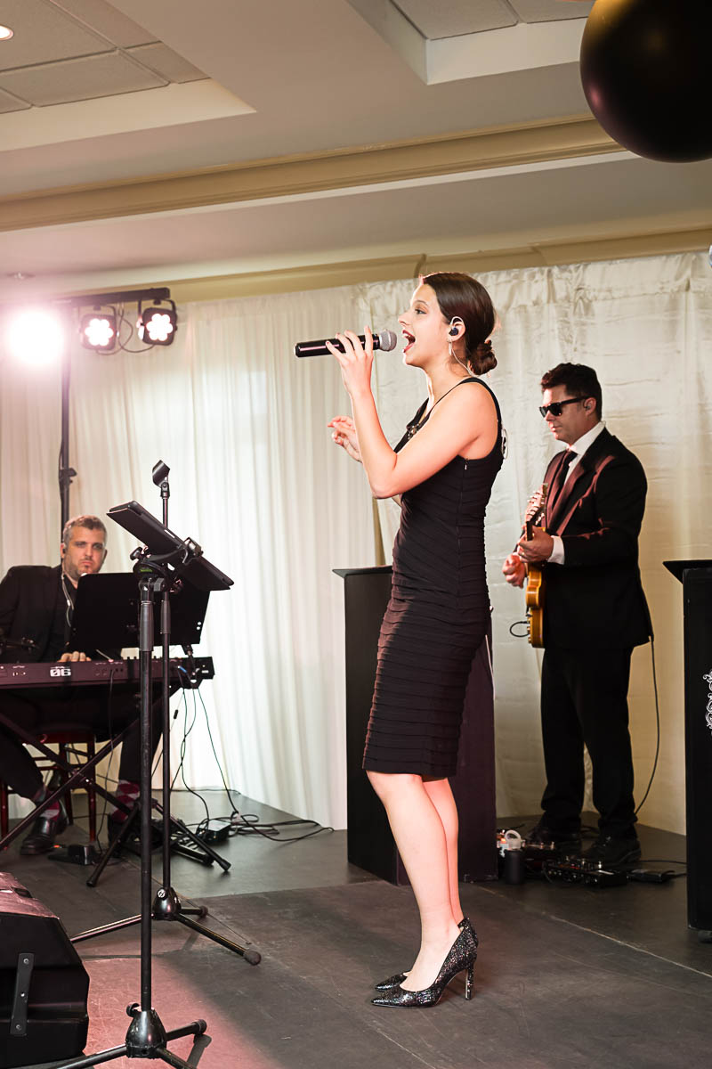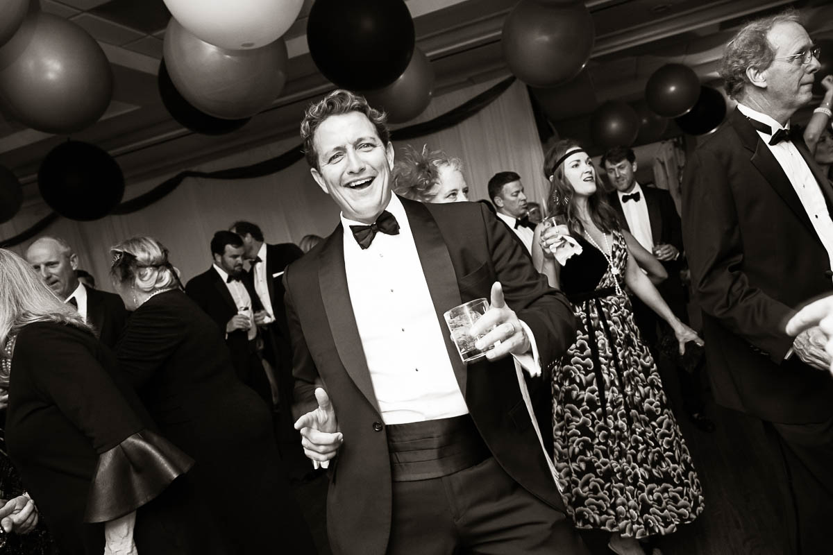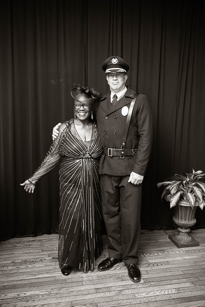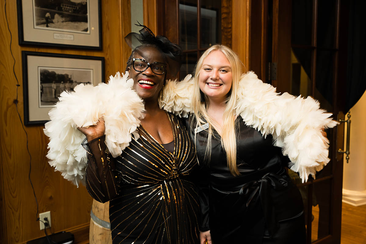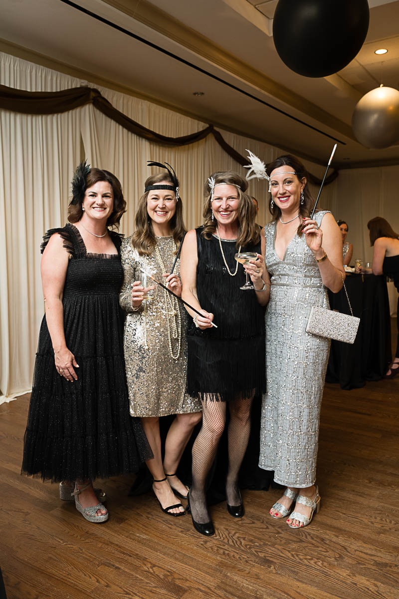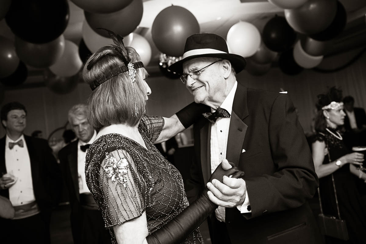 The guests looked fabulous as well! Everyone took the theme to heart and really dolled up in 1920s outfits, accessories, hair styles, and shoes. The food was fantastic. There was a full brass band, keeping the dance floor hopping. And the Speakeasy had a colorful piano player who took requests and got everyone to sing along.