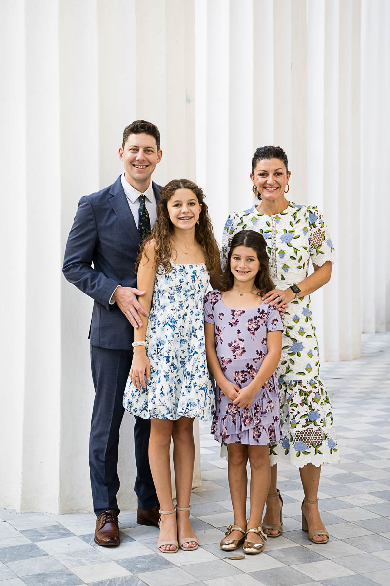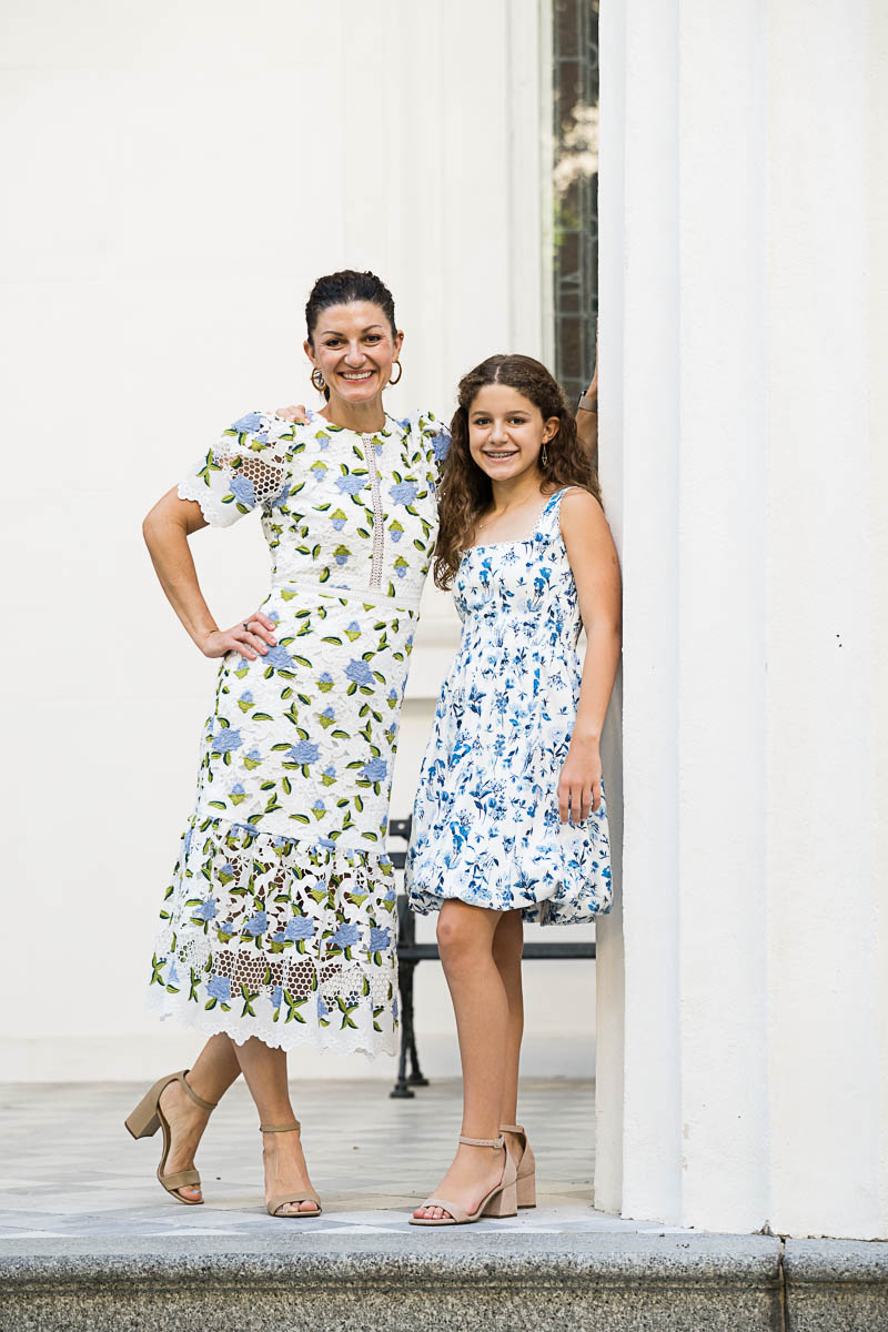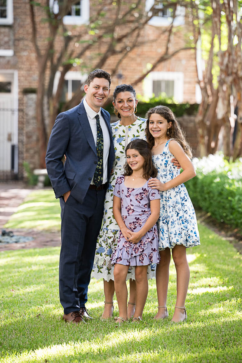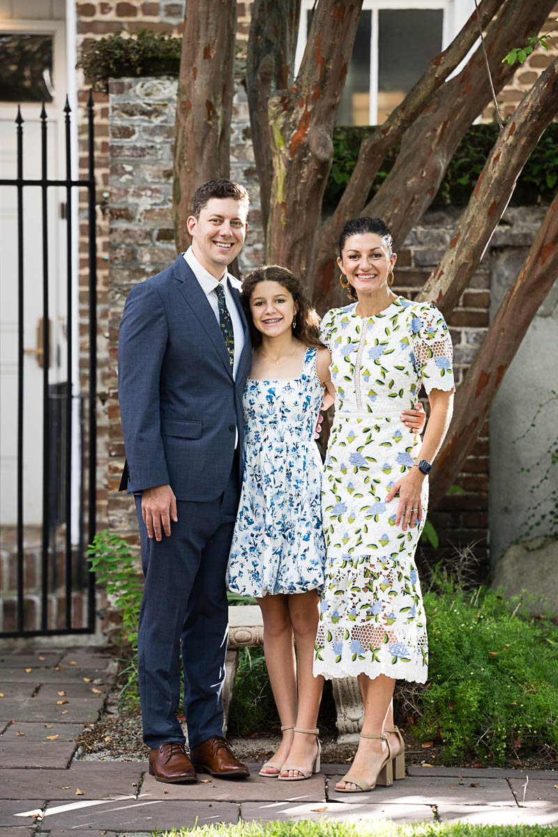 I met up with Eva and her family early that morning to capture a few family portraits and individual shots of Eva. She was beautifully dressed in a lovely blue floral pattern. Kahal Kadosh Beth Elohim Synagogue has a gorgeous old historic campus with great backdrops for photography. KKBE is a Reform Jewish congregation and synagogue located on Hassel Street. Having founded the congregation in 1749, it is known as the first Reform synagogue located in the United States.