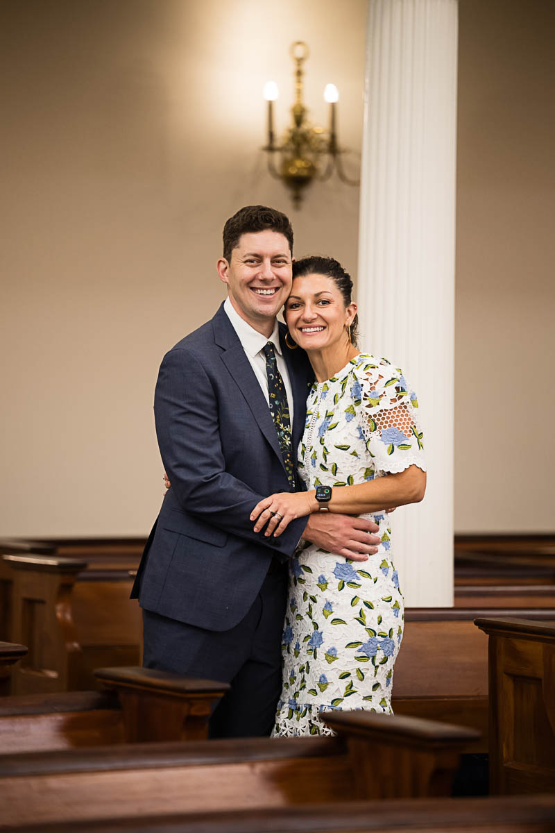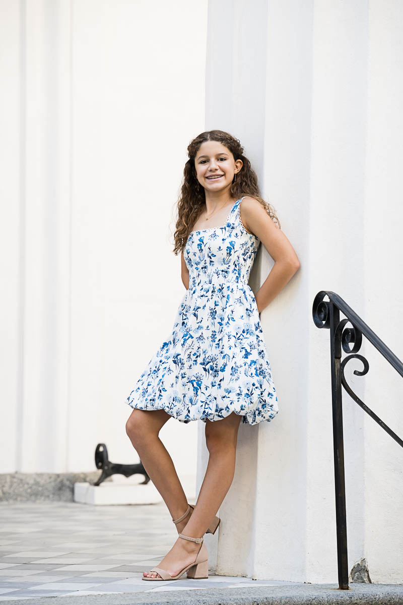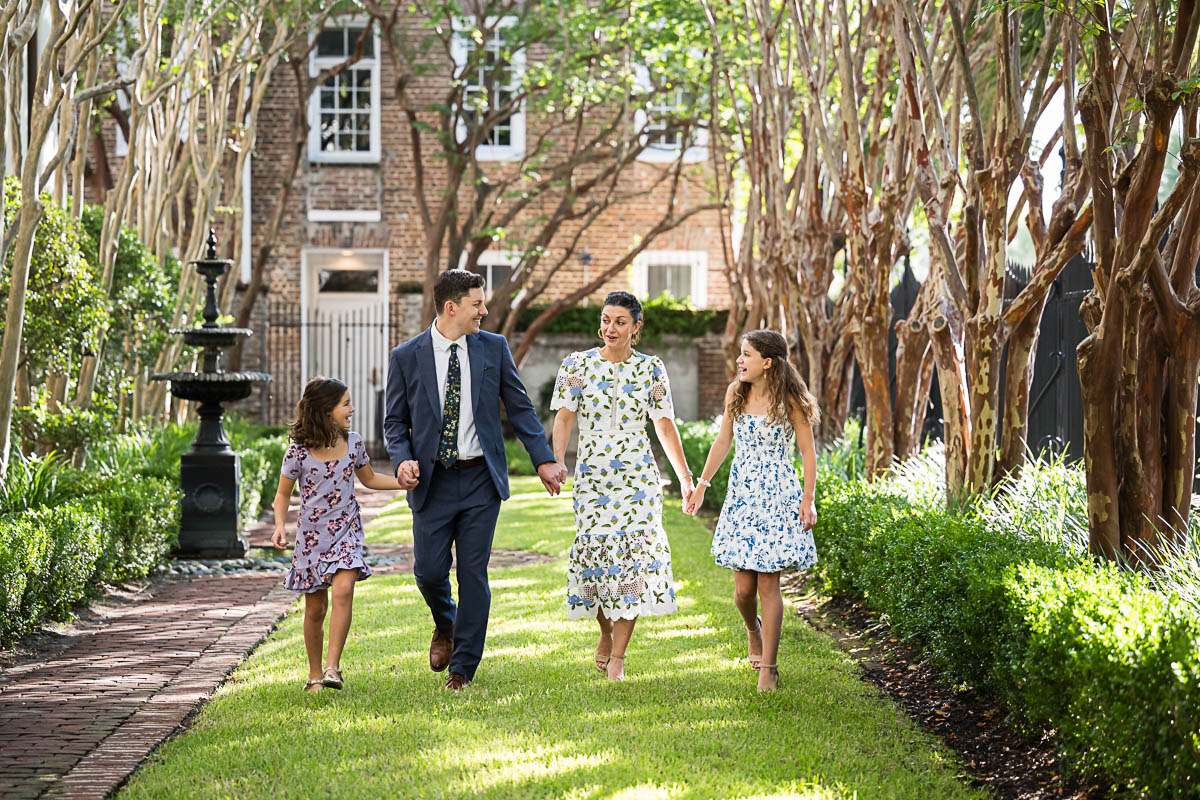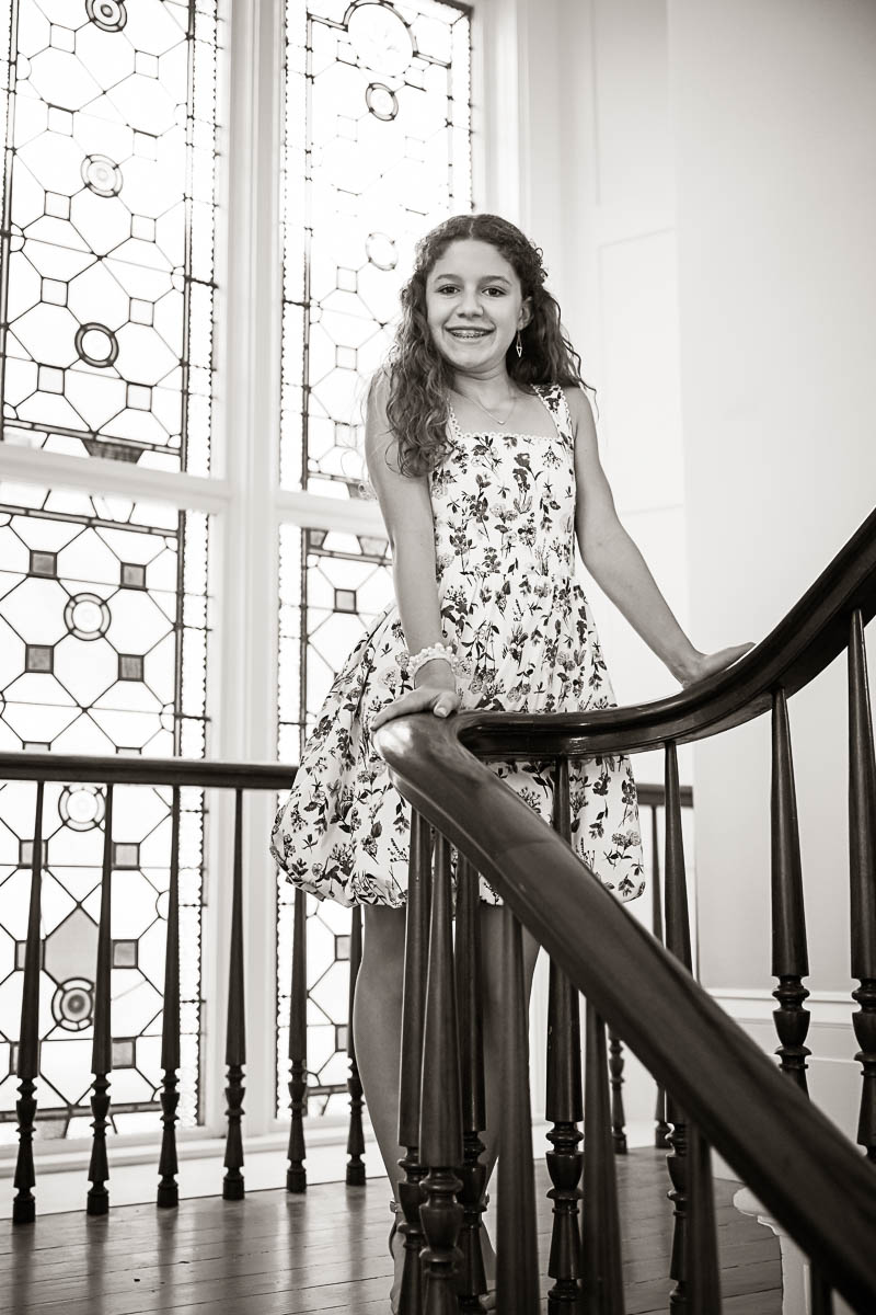 I met up with Eva and her family early that morning to capture a few family portraits and individual shots of Eva. She was beautifully dressed in a lovely blue floral pattern. Kahal Kadosh Beth Elohim Synagogue has a gorgeous old historic campus with great backdrops for photography. KKBE is a Reform Jewish congregation and synagogue located on Hassel Street. Having founded the congregation in 1749, it is known as the first Reform synagogue located in the United States.