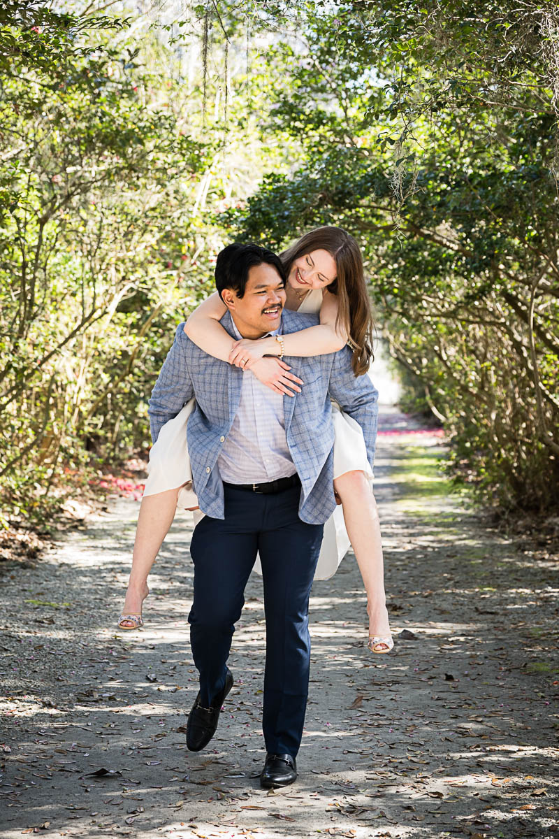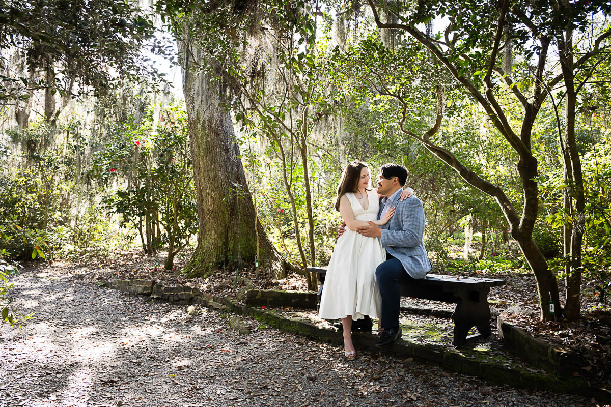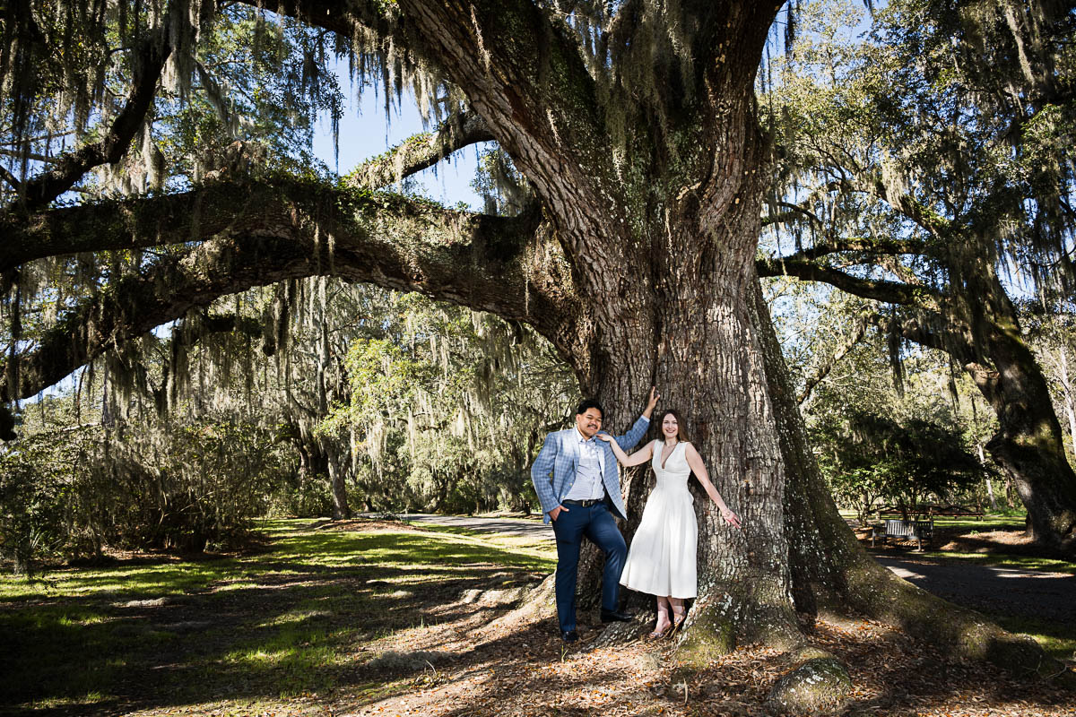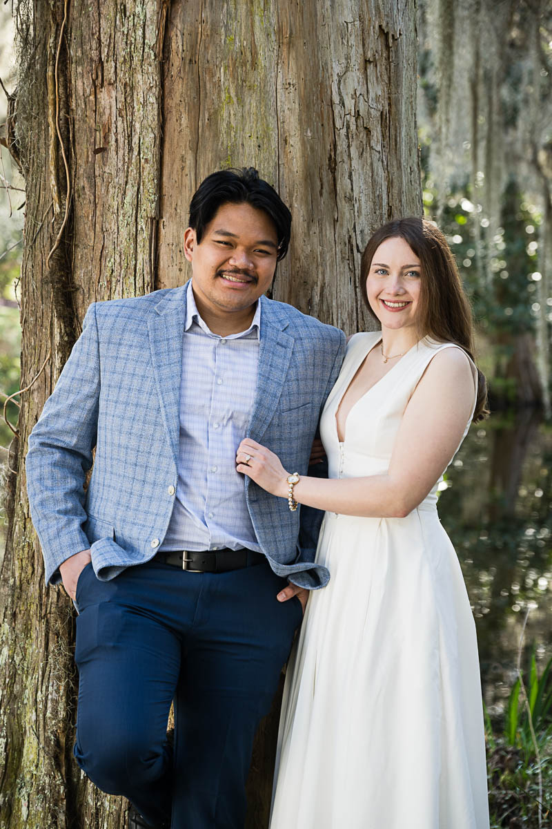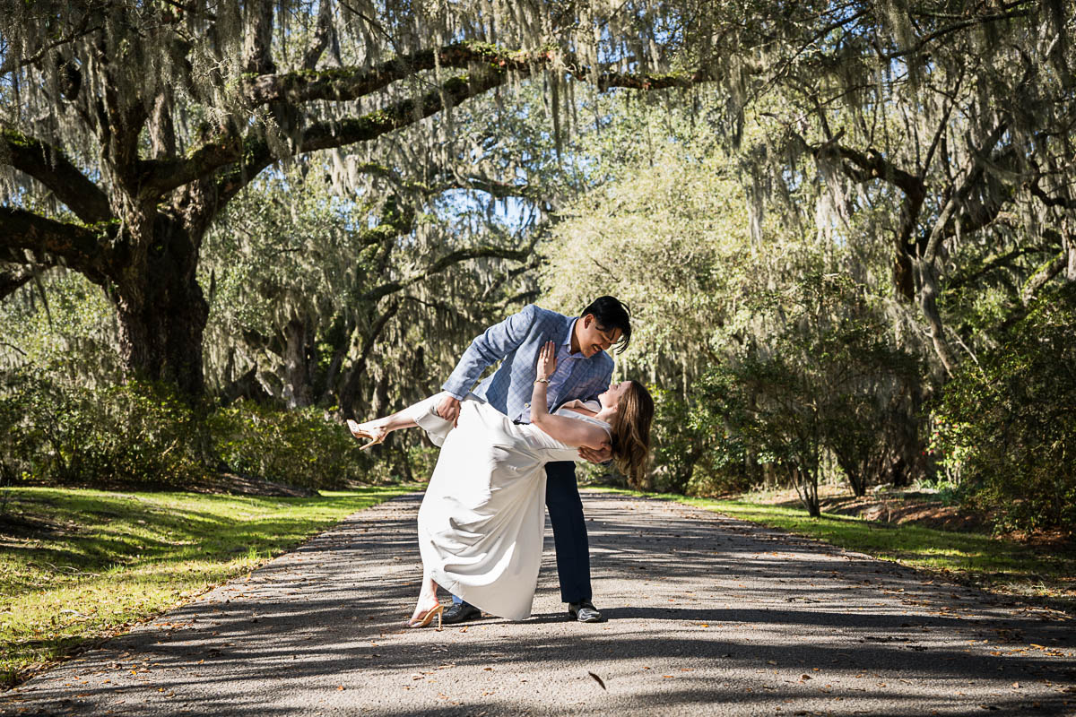 Kai and I had created a schedule, and mapped out a route for him to lead her to the bridge. Even though she had no idea what we were up to, and he had never been there before, Kai somehow managed to get her to Magnolia Plantation right on schedule, and lead her right down the path I had told him to take. Kai had cleverly told her he was there on a work trip and had to make a presentation to his team. He asked if they could get to the plantation early so that he could practice his speach! Arriving at “the spot”, he handed her a copy of the speech so she could read along. Only instead of a work speech, it was his declaration of love and devotion to Savannah. I could see the emotions welling up as she read along. Then he got down on one knee and asked her to be his wife. She said YES!!!