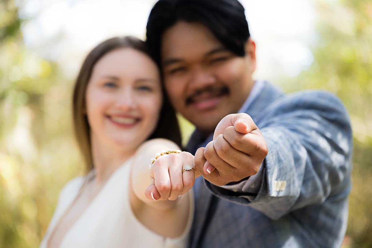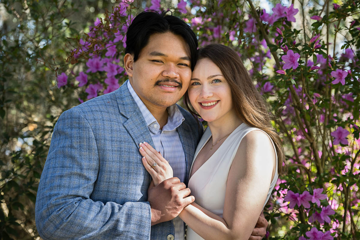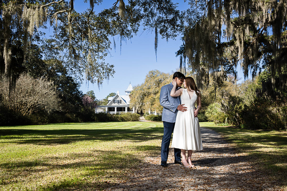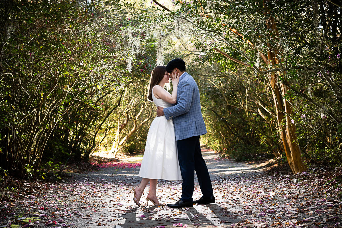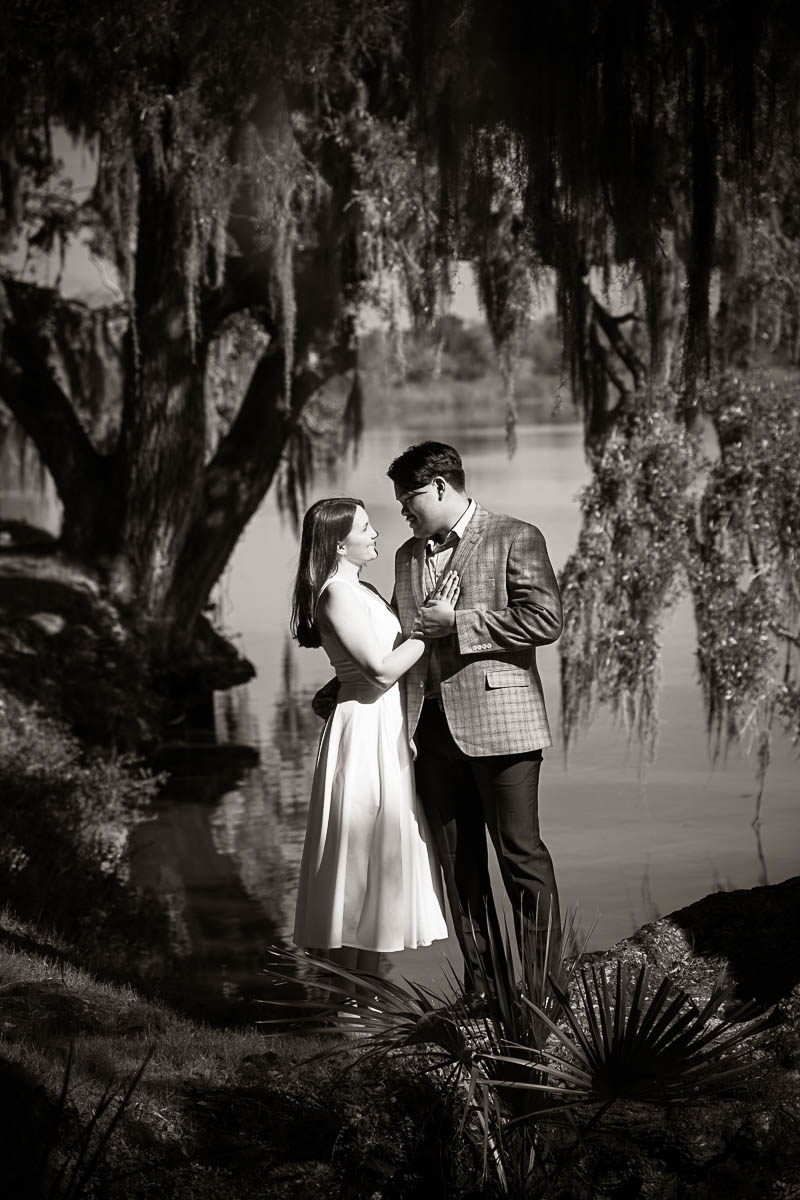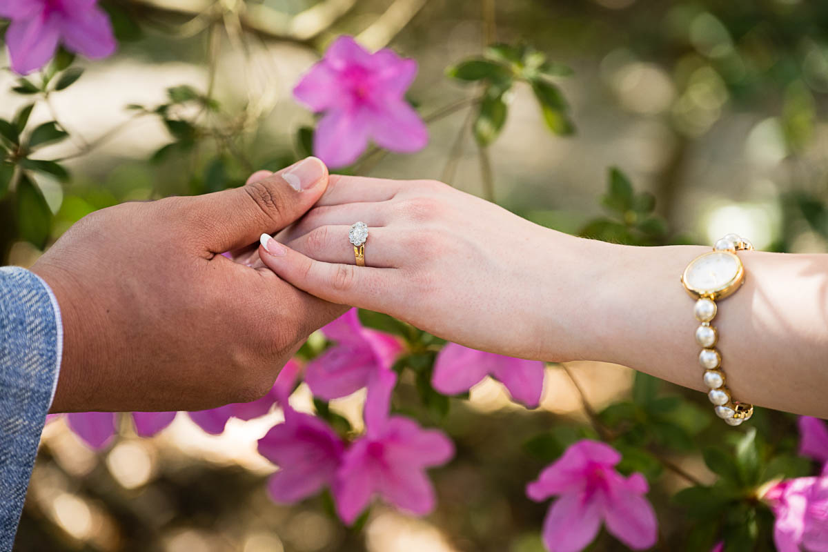 Kai and I had created a schedule, and mapped out a route for him to lead her to the bridge. Even though she had no idea what we were up to, and he had never been there before, Kai somehow managed to get her to Magnolia Plantation right on schedule, and lead her right down the path I had told him to take. Kai had cleverly told her he was there on a work trip and had to make a presentation to his team. He asked if they could get to the plantation early so that he could practice his speach! Arriving at “the spot”, he handed her a copy of the speech so she could read along. Only instead of a work speech, it was his declaration of love and devotion to Savannah. I could see the emotions welling up as she read along. Then he got down on one knee and asked her to be his wife. She said YES!!!