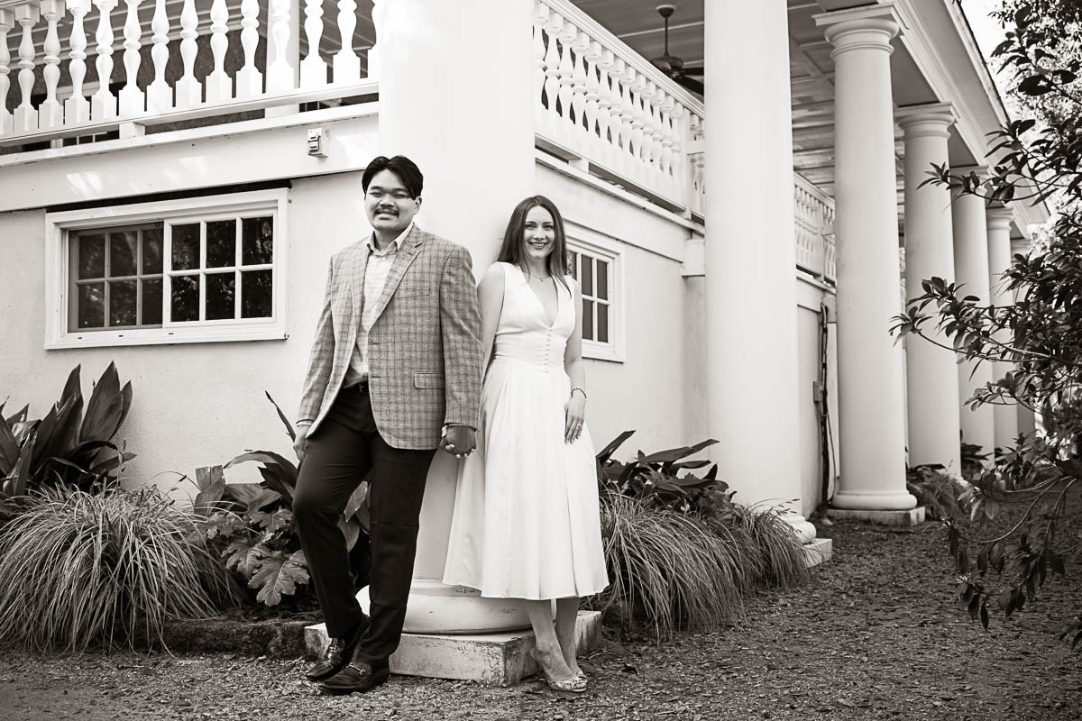 After the excitement settled, we spent some time strolling around the beautiful grounds creating authentic engagement portraits. Using the versatile Nikkor Z 24-120mm f4 S lens, and occasionally adding some off-camera flash, we captured a wonderful collection of images celebrating the beginning of their next chapter together.