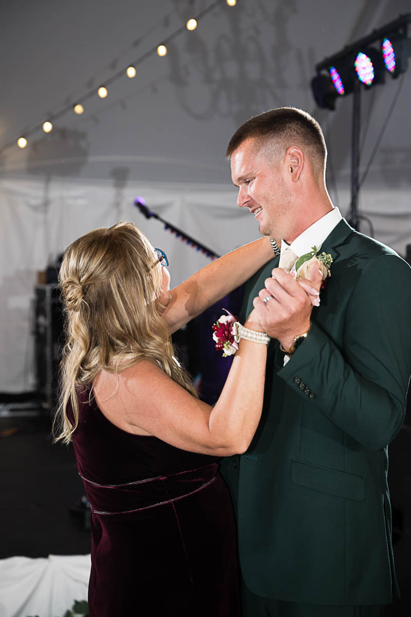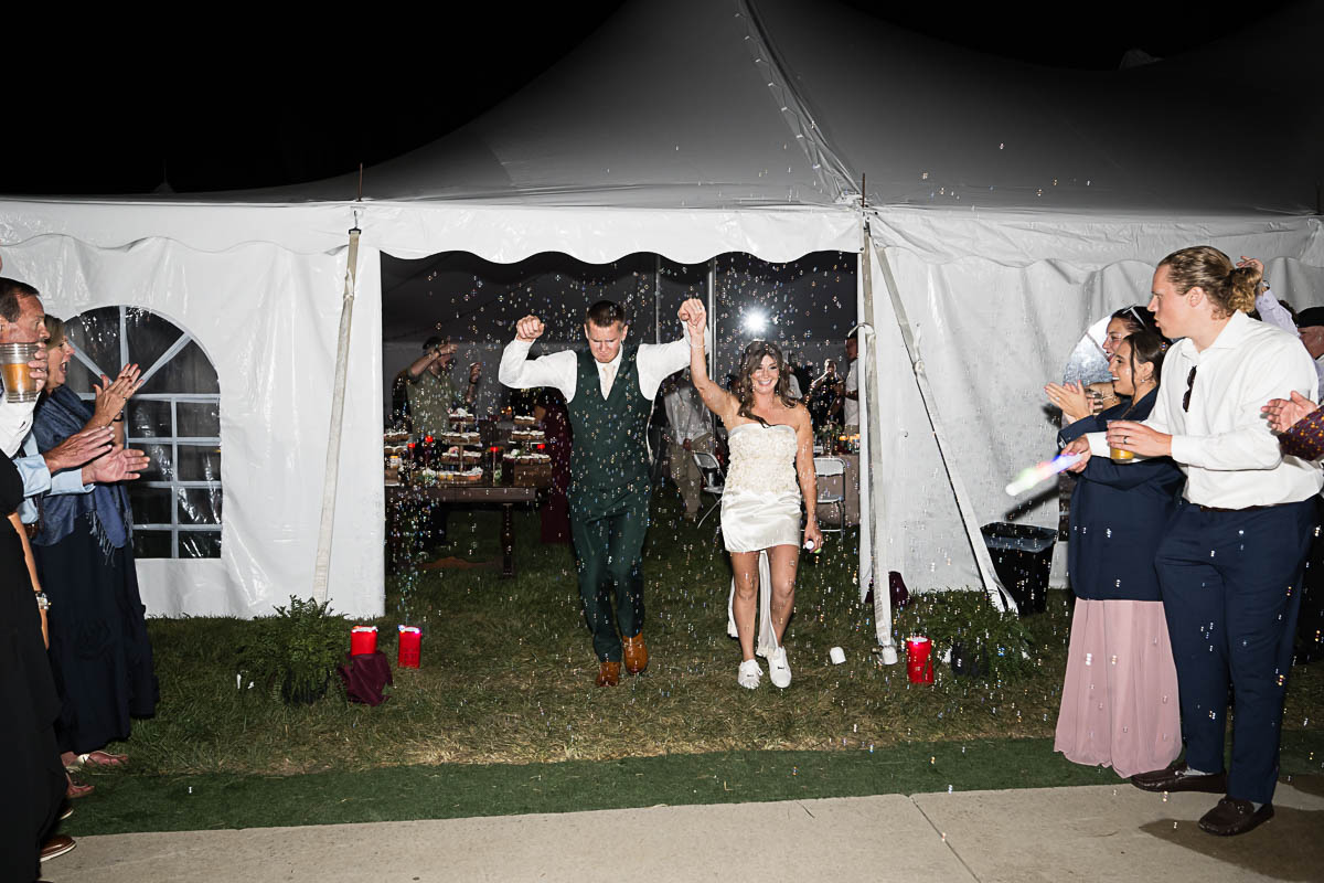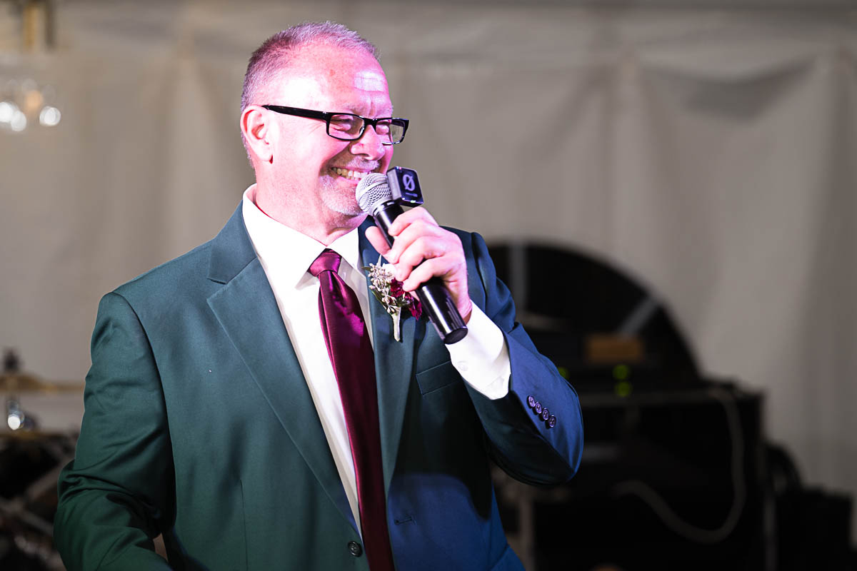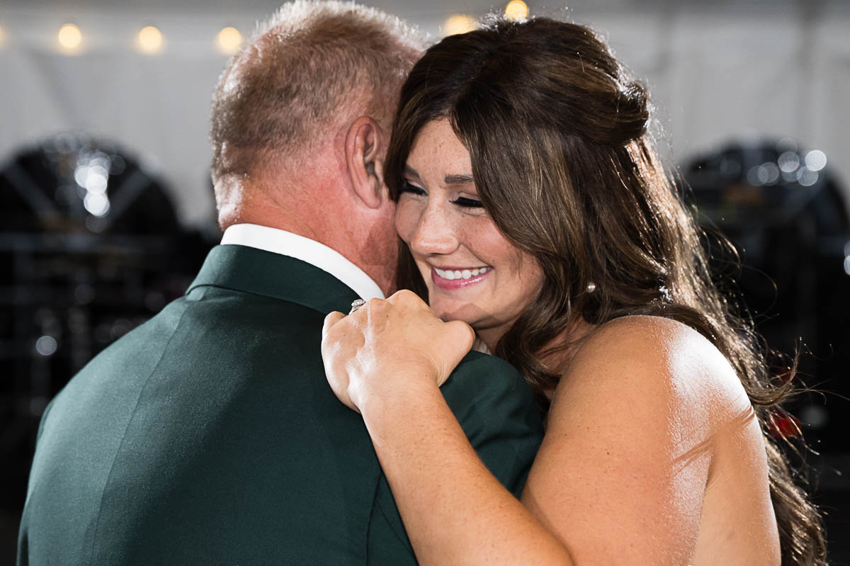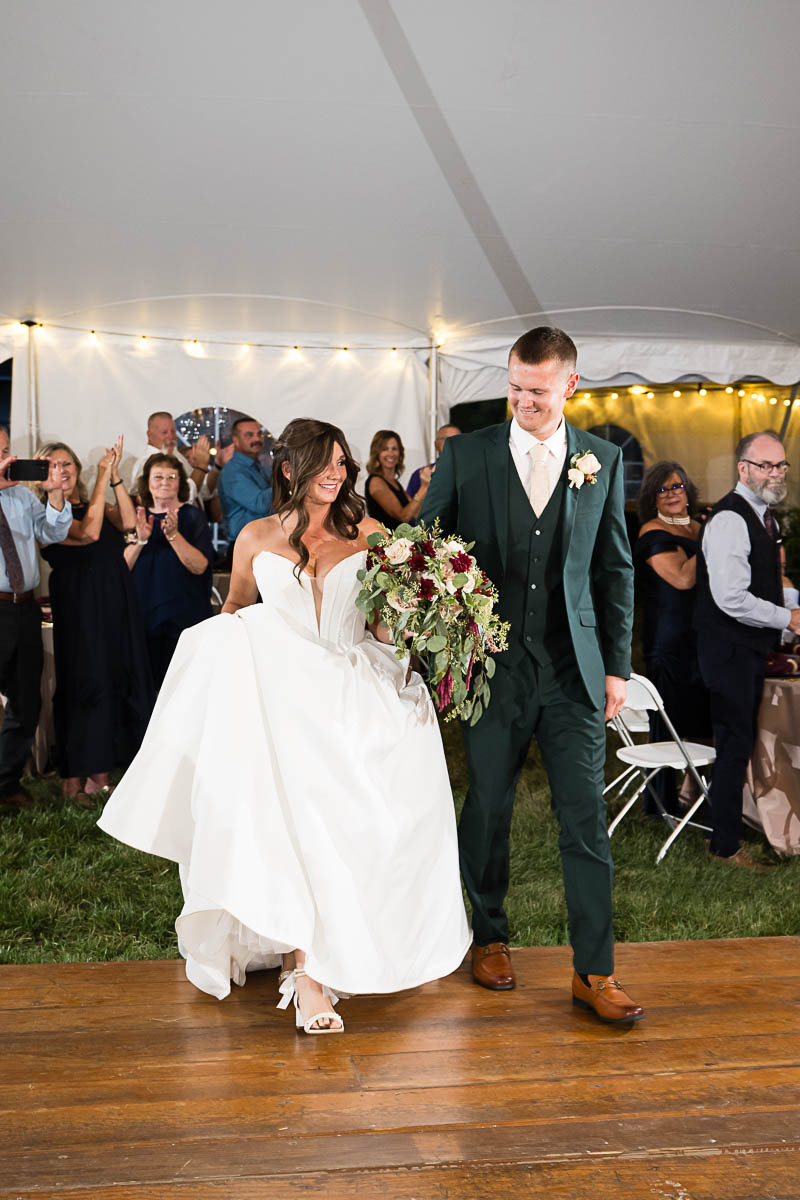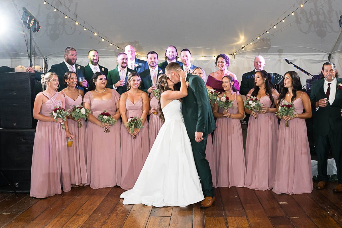 The reception was held in a giant tent on the property. With touching toasts, an auctioneer letting the highest bidding table be first to go to the buffet line, a fun cake cutting, and an awesome band keeping the party going all night long…everyone had an amazing time!!!