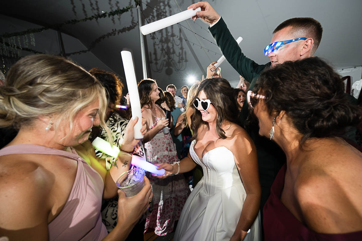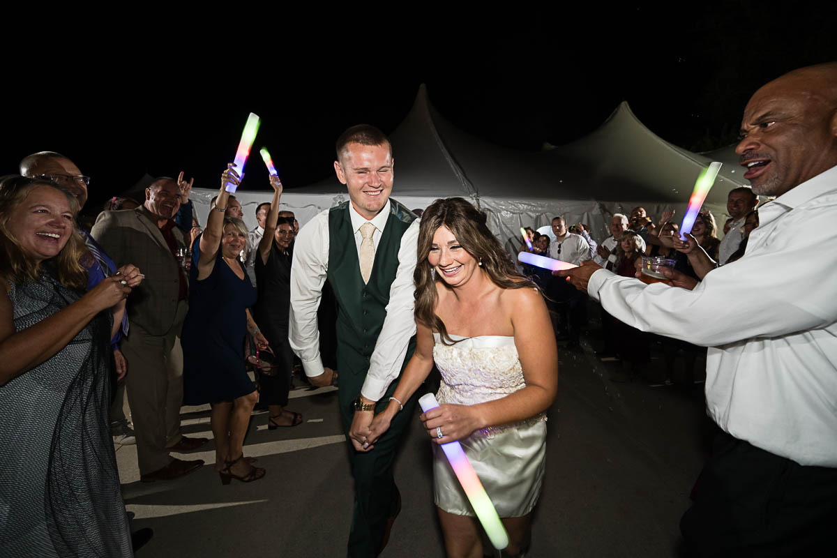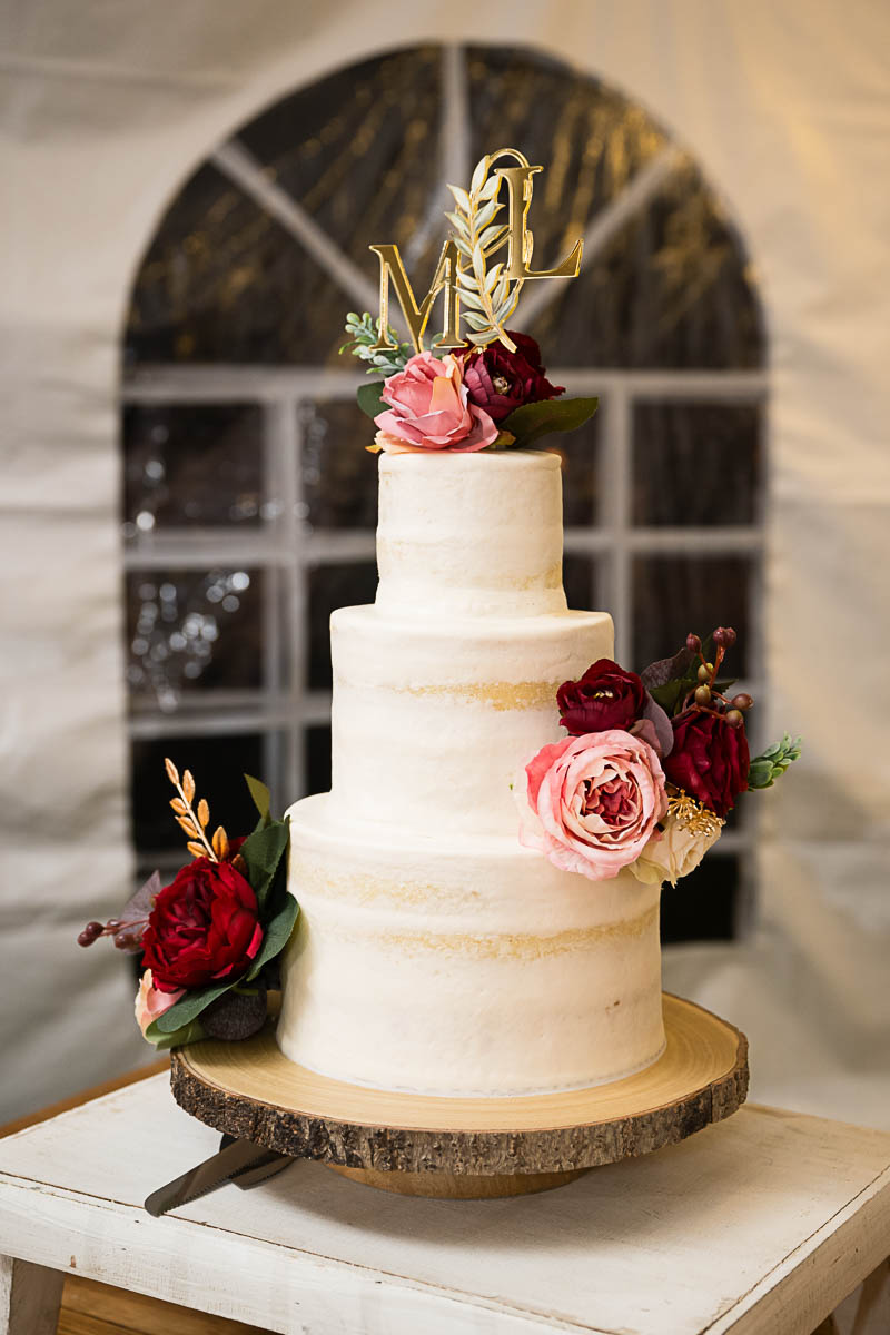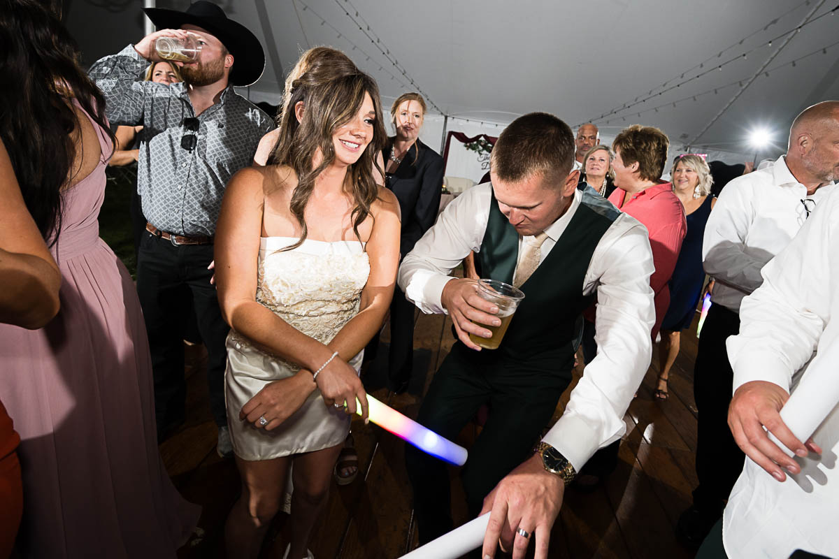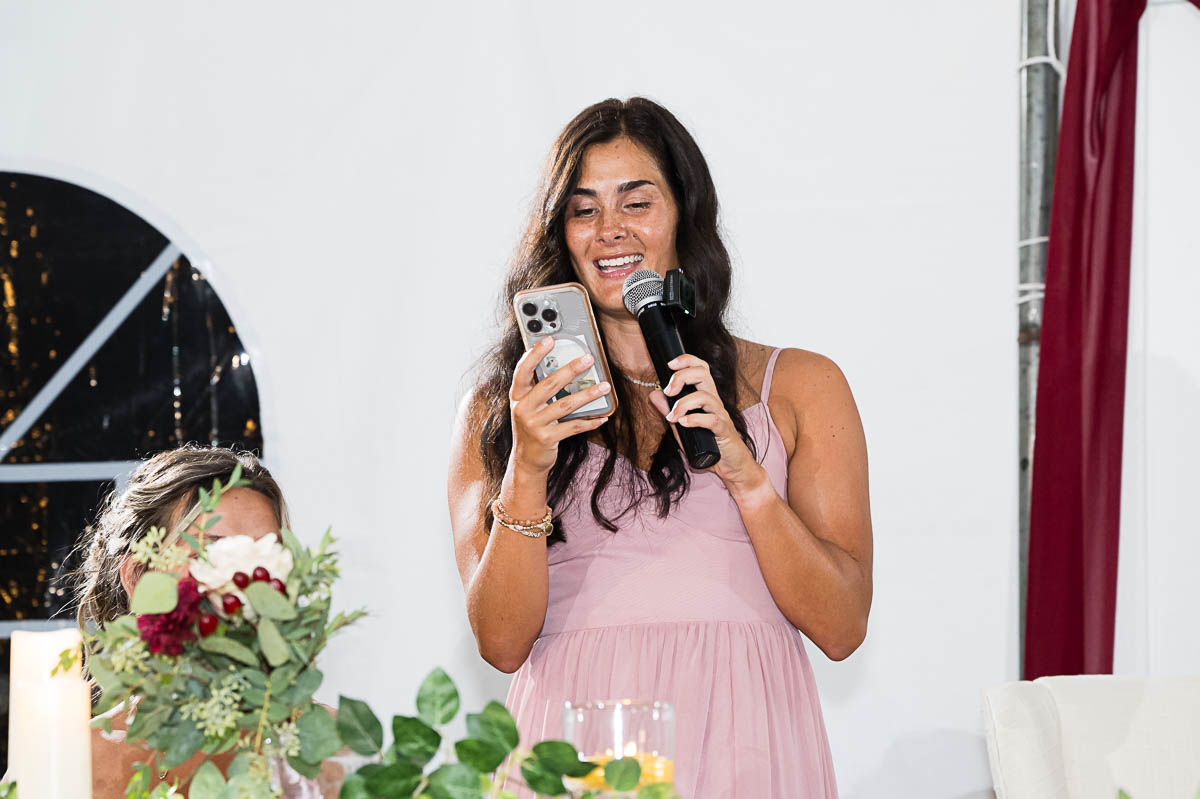 The reception was held in a giant tent on the property. With touching toasts, an auctioneer letting the highest bidding table be first to go to the buffet line, a fun cake cutting, and an awesome band keeping the party going all night long…everyone had an amazing time!!!
