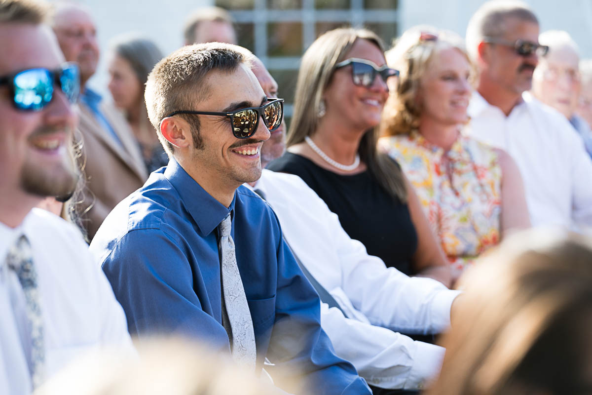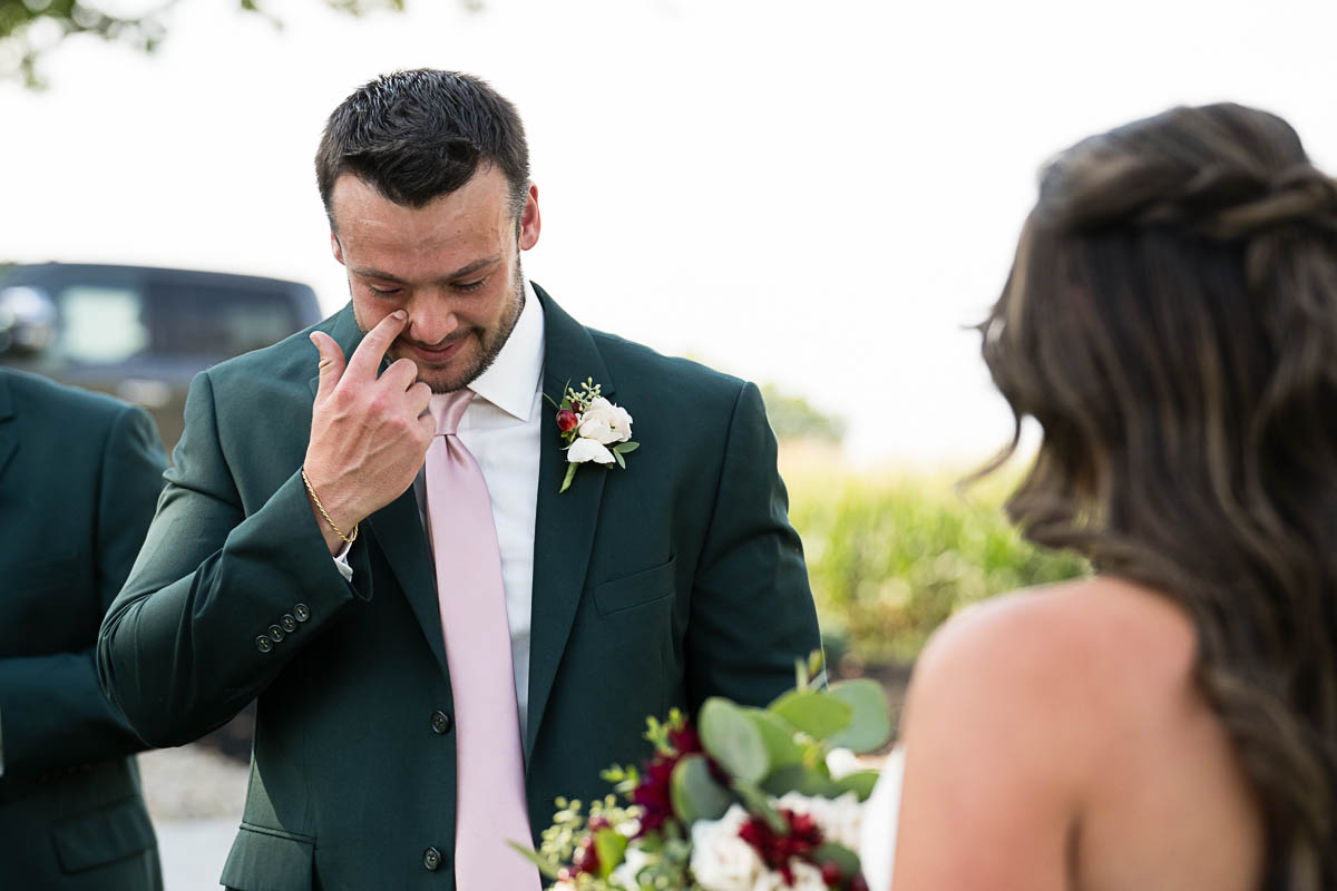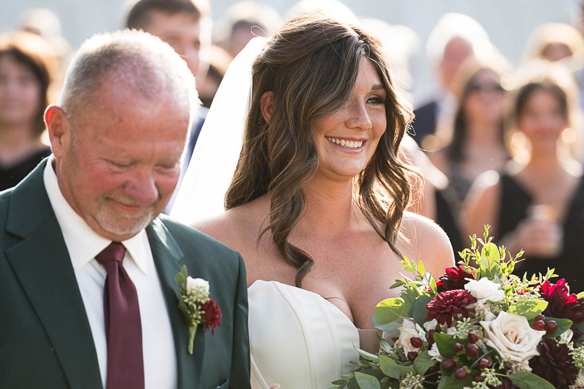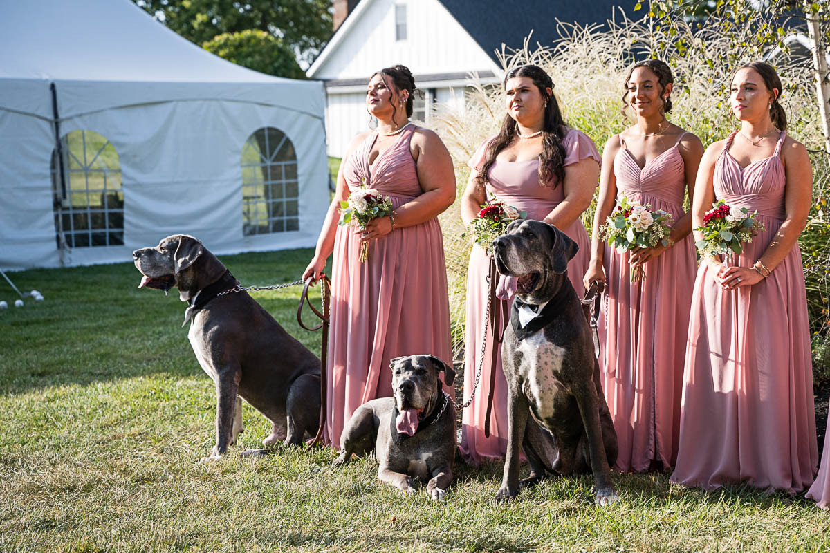 Madeline’s family includes 3 giant Great Danes. Just because they have 4 legs instead of 2, doesn’t mean they are any less important. So of course Oscar, Oakley, and Winston were made official groomsmen, complete with bowties, and escorted to their places by 3 of the bridesmaids. Being a competitive horse rider, it was so perfect that Madeline and her parents arrived at the main ceremony in a classic horse-drawn carraige. Tears welled up in Logan’s eyes as he saw his bride for the first time, stepping off the carraige, beaming with joy as she walked down the aisle in her elegant gown.
