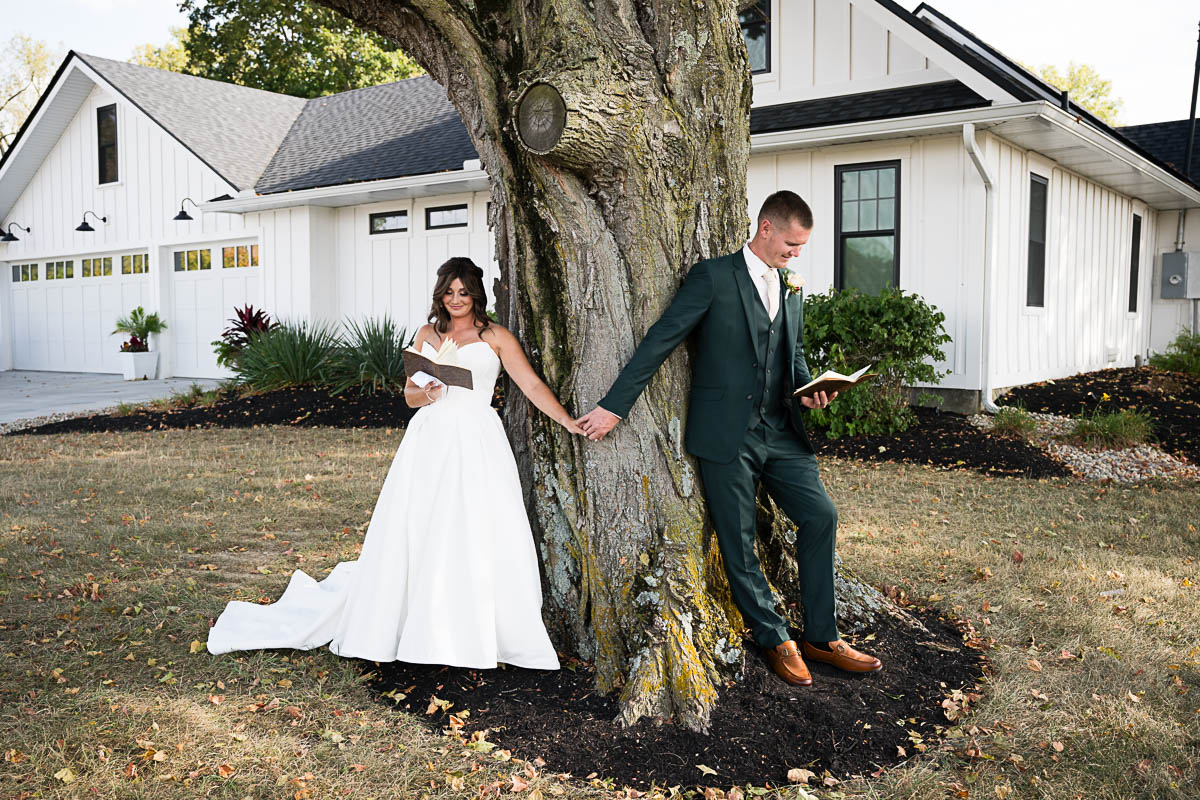 After getting ready, Madeline and Logan had a private No-Look ceremony under the giant oak in the front yard, where they exchanged private vows that they had written to one another. Then Madeline had a fun Dress Reveal with all her bridesmaids, and a touching First Look with her dad and her brother.