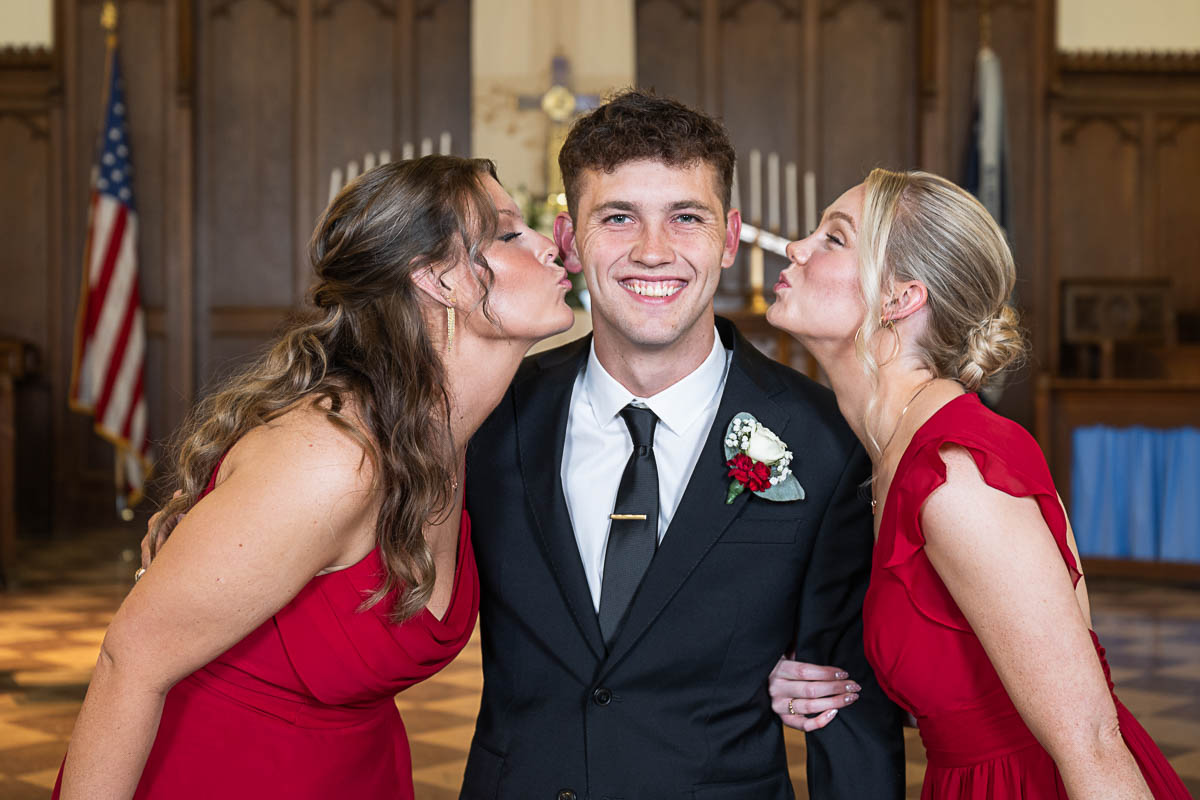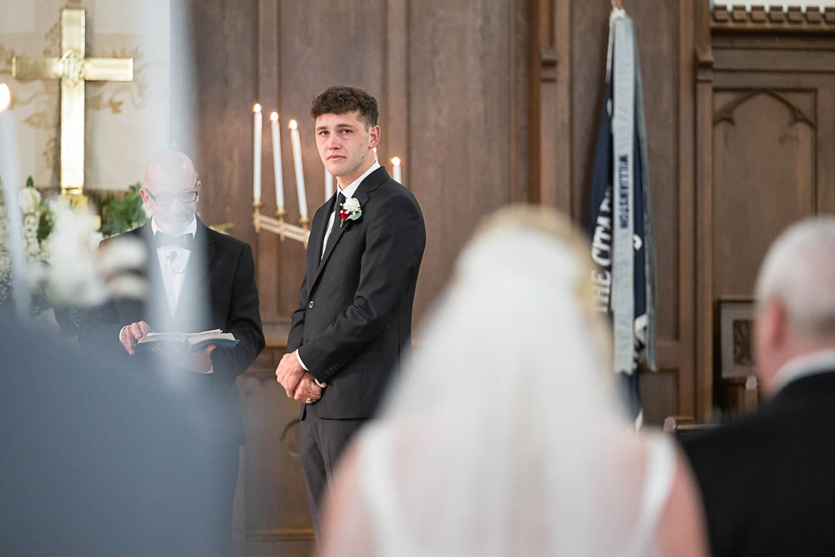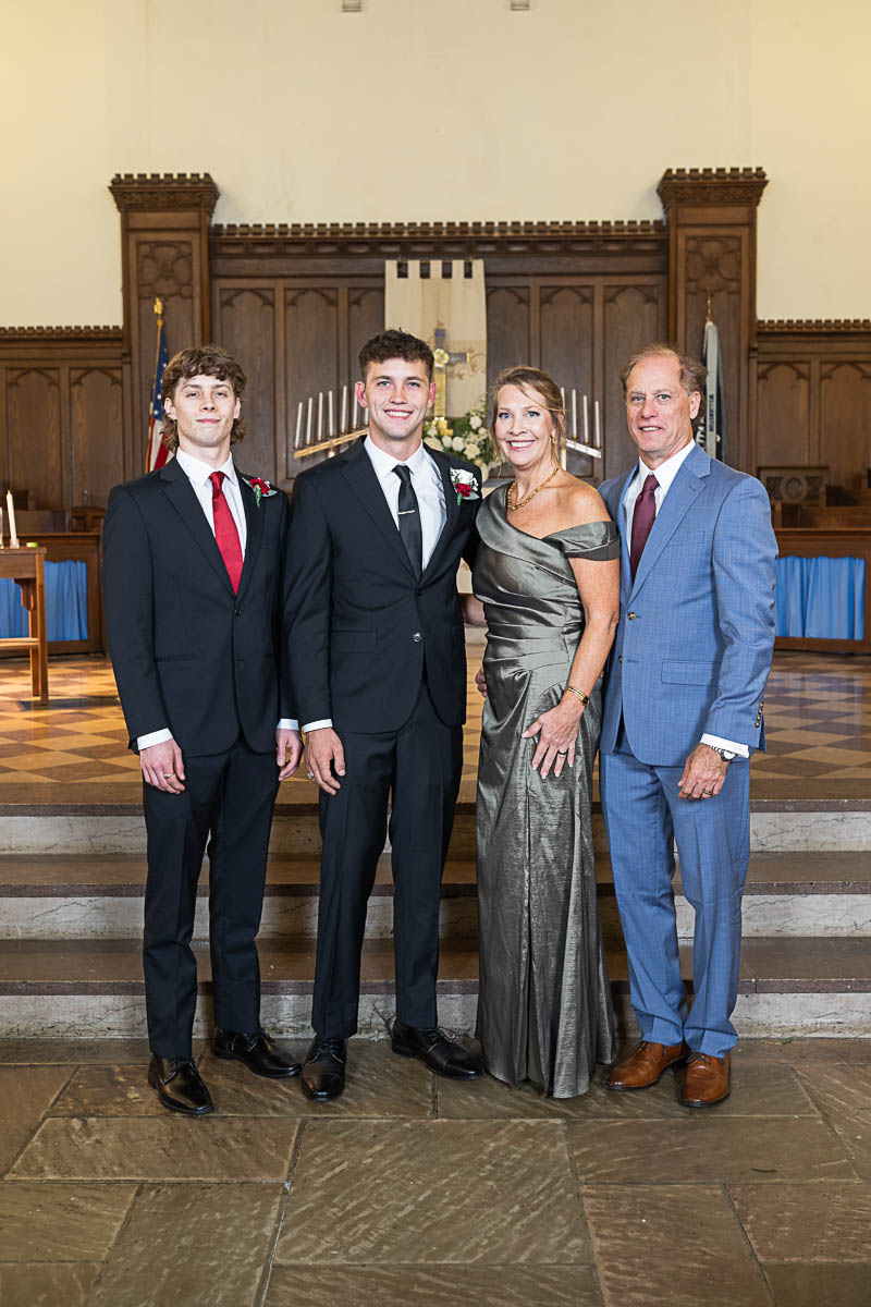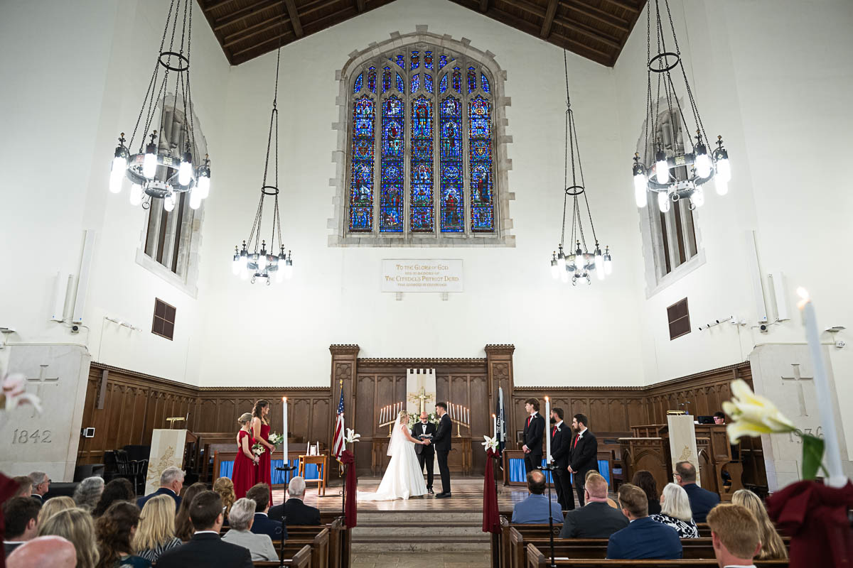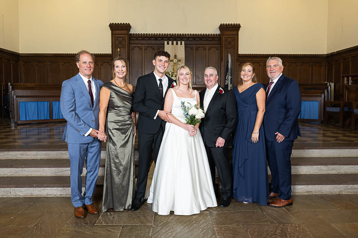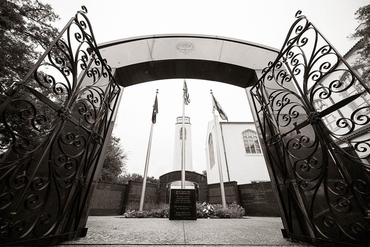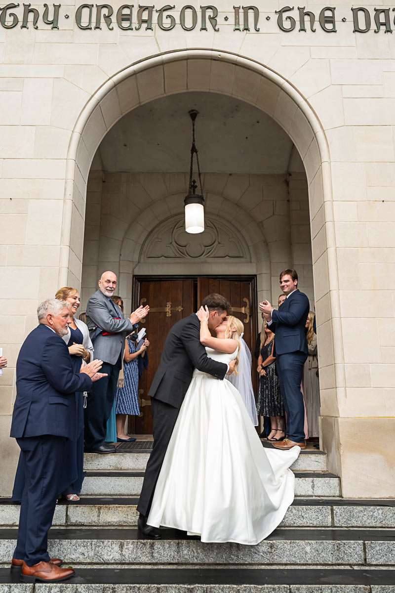 I had the distinct pleasure of photographing their nuptials at Summerall Chapel on The Citadel Campus this past weekend. The weather was dreary. But the love between these two brightened the chapel and warmed everyone’s hearts! Plus the rain let up just enough at the very end for a fun group photo with all their guests…which was one of Madison’s special requests. Plus we captured some dramatic shots of the beautiful couple on The Quad in front of Justin’s barracks.