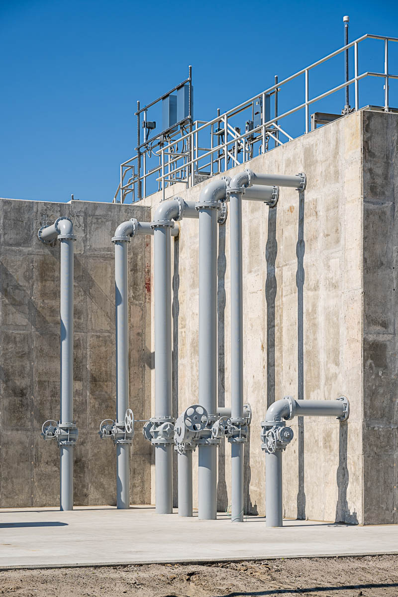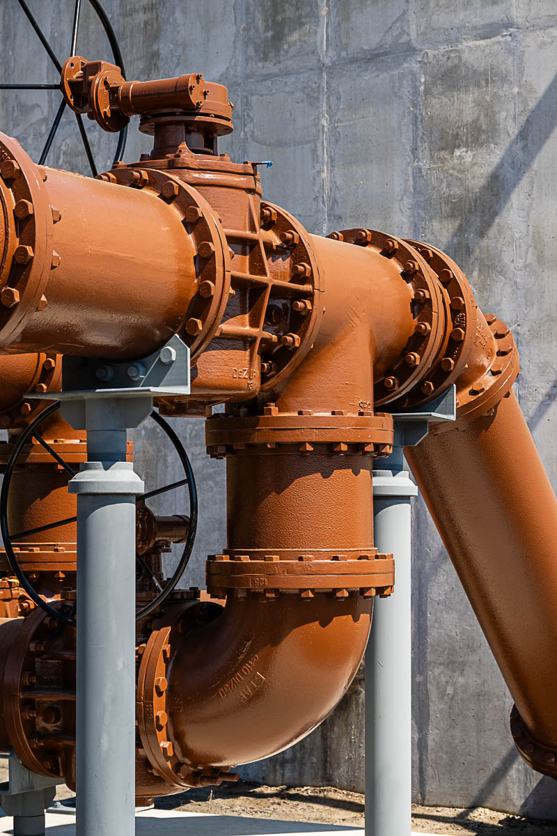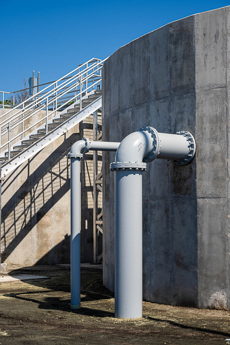 This was actually the third wastewater treatment plant I’ve photographed for Harper General Contractors, and I’ve really enjoyed documenting these impressive facilities. There’s a lot more going on at a treatment plant than most people realize. Massive tanks, miles of piping, interesting industrial textures, and perfectly symmetrical infrastructure all combine to create surprisingly cool compositions. Who knew wastewater could be so photogenic?